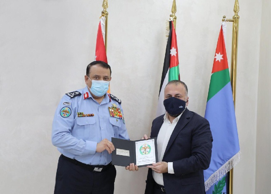 كرم مدير الأمن العام اللواء الركن حسين الحواتمة، رئيس جمعية إنتاج د. بشار الحوامدة .