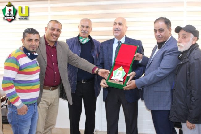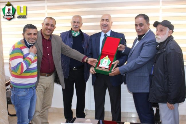 وفي ختام الزيارة قدم الكوز وشلباية درع النادي إلى زريقات الذي أثنى على هذا التكريم.