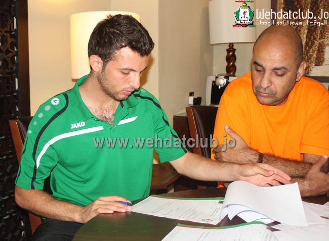 هذا وجرت مراسم التوقيع بعد بحضور رئيس النادي طارق خوري ومدير النشاط زياد شلبايه والمدير الفني عبدالله ابو زمع.