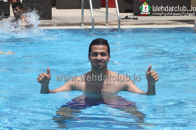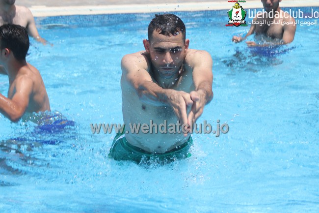 وبعد تمارين الاطاله انطلق لاعبو الفريق الى المسبح بإستثناء احمد ابو انجيلة ورامي الردايده وعلاء مطالقة الى صالة الحديد والقيام ببعض تمارين التقوية.