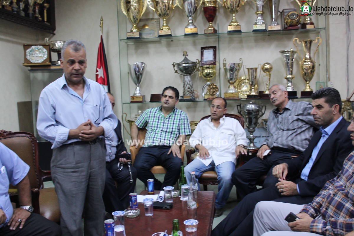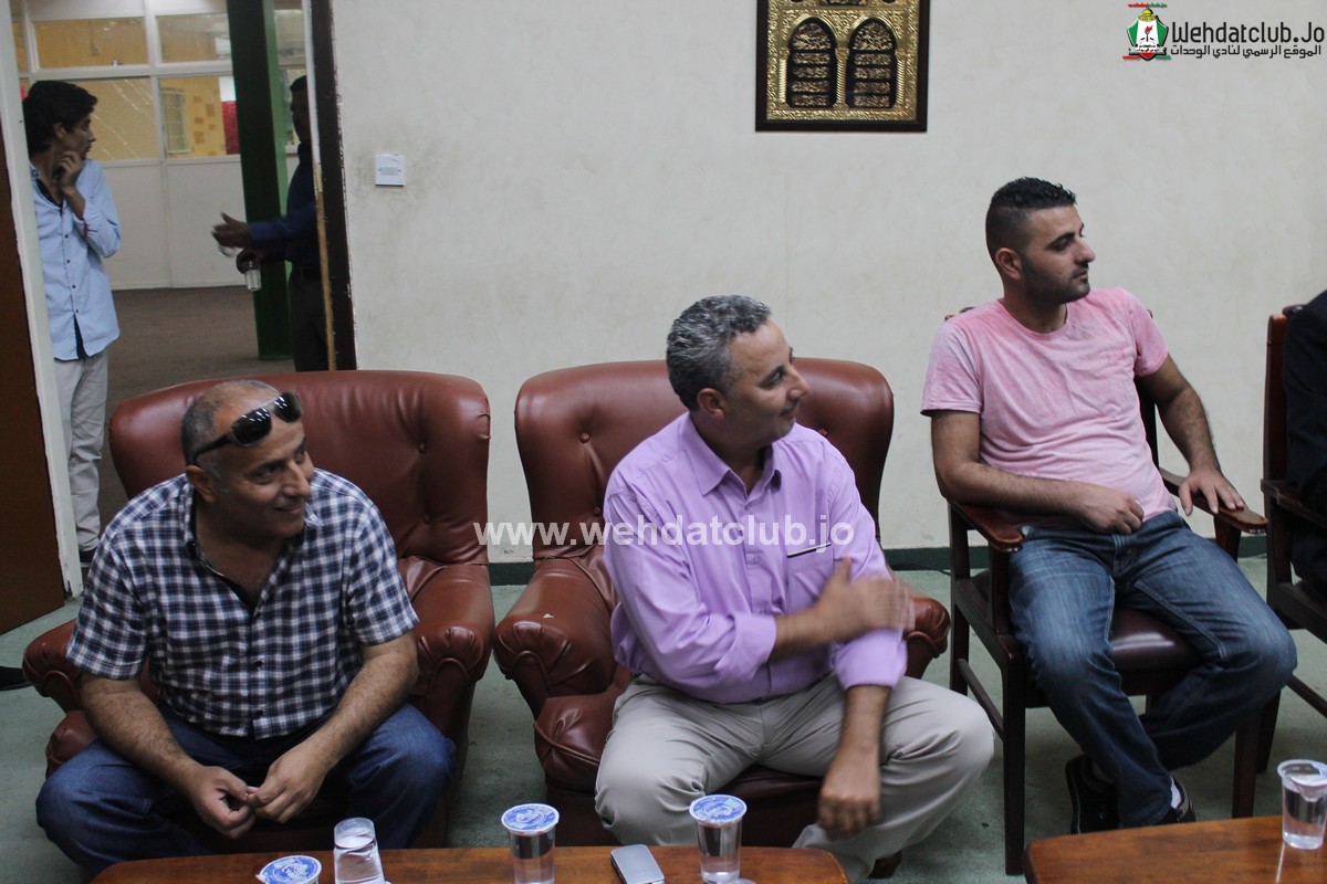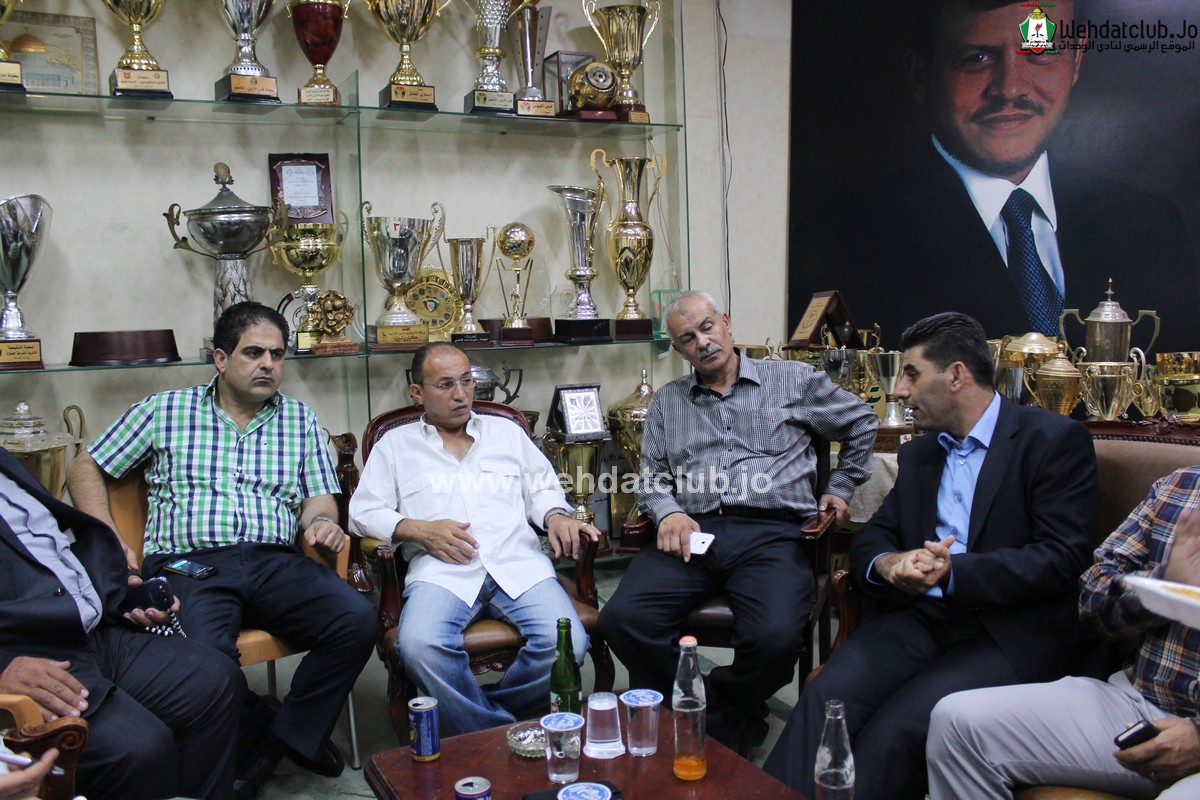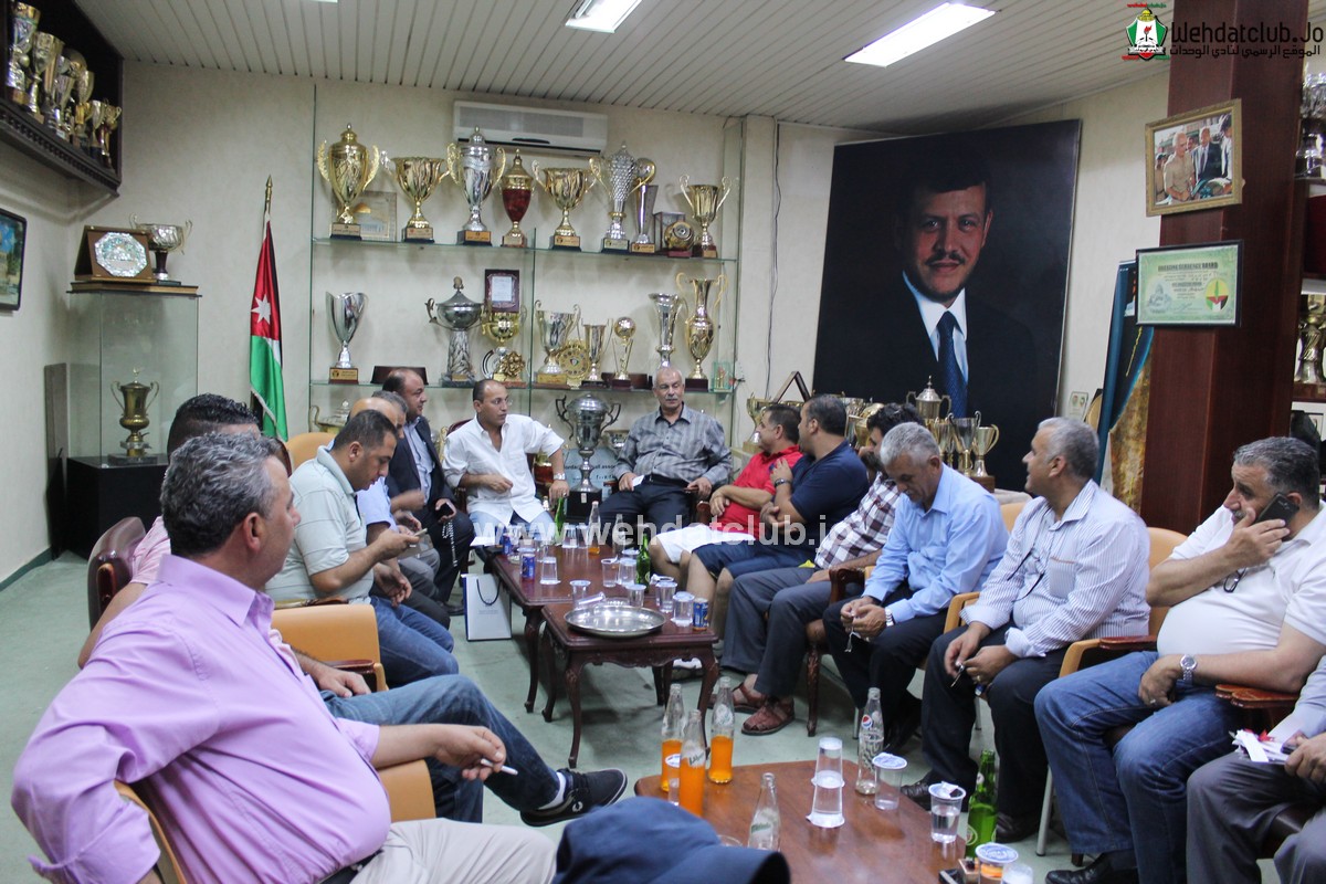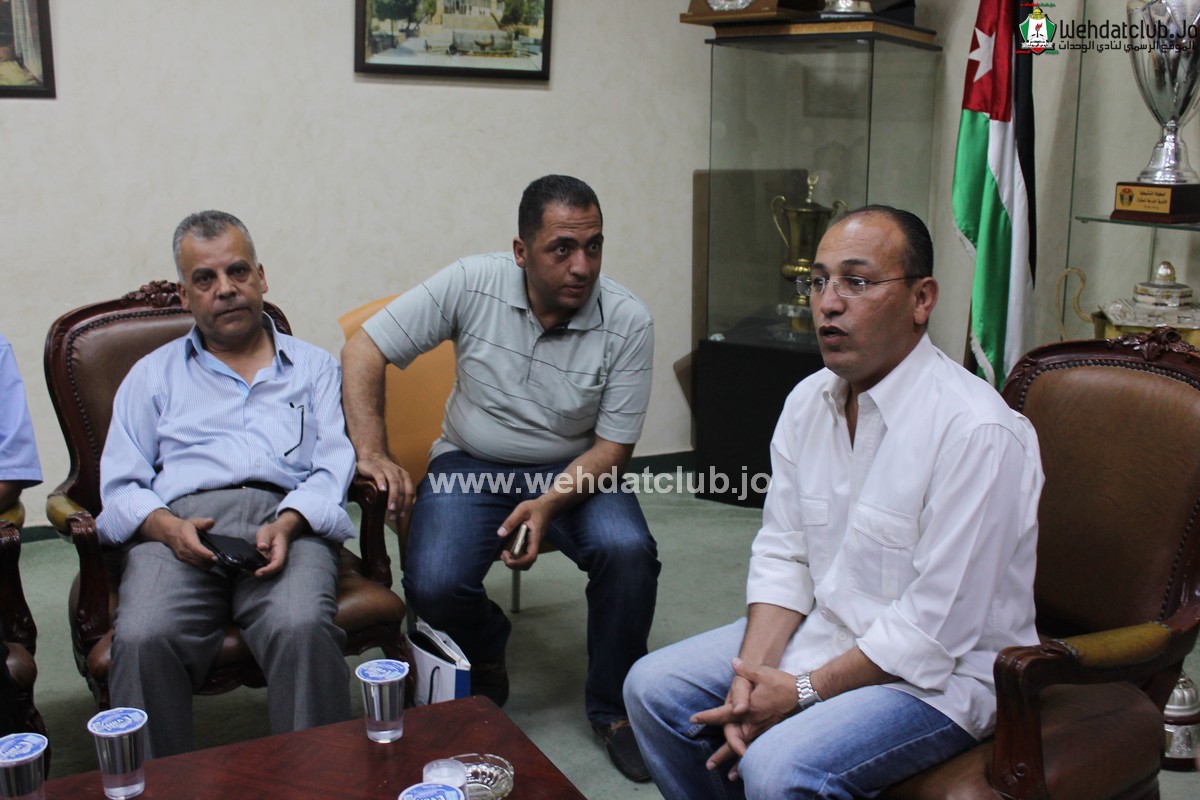 وكان في استقبال الوفد الفلسطيني اعضاء مجلس الاداره حاتم ابو معيلش و زياد شلبايه بالاضافة الى أمين سر النادي عوض الأسمر الذي رحب بالضيوف مؤكداً على عمق العلاقة الأخوية التي تربط نادي الوحدات بالأندية الفلسطينية الشقيقة, والدور الكبير الذي يلعبه نادي الوحدات باعتباره النادي الأم لكافة الأندية الفلسطينية في الداخل والشتات.