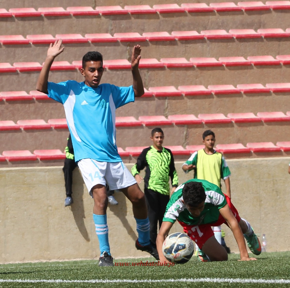 انتهت قمة الوحدات والفيصلي سن 14 بالتعادل بهدف لمثله والتي اقيمت صباح اليوم على ملعب حدائق الملك عبد الله في المقابلين الساعه العاشره صباحا ،سجل هدف الوحدات اللاعب عباده الشراربه في د23 من الشوط اﻻول وهدف الفيصلي في الدقائق الاخيره من الشوط الثاني ، قدم الوحدات مباراه قويه على مدار شوطيها واهدر العديد من الفرص التي كانت كفيله بتجير المباراه لصالحه وواجه الوحدات حماسه ونديه من الفيصلي ولكن الافضليه كانت للاخضر . وفي الشوط الثاني من اللقاء تغاضه حكم اللقاء عن ضربة جزاء صحيحه للوحدات بعد تعرض مهاجم الوحدات للاعثار داخل منطقة الجزاء وسط استغراب المتابعين،وقام الكابتن خليل الجارحي بعدة تبديلات في الشوط الثاني عمل على السيطره الوحداتيه من خلال دخول احمد داوود بمكان ايمن الصوص واحمد غنام مكان محمود الصﻻج . وبتعادل الوحدات الفيصلي بقي الوحدات وحيدا في الصداره امام الحسين برصيد 13 نقطه والحسين ثانيا برصيد 12 نفقطه وكذلك وجود مباراه مؤجله بين الفيصلي وشباب الاردن .