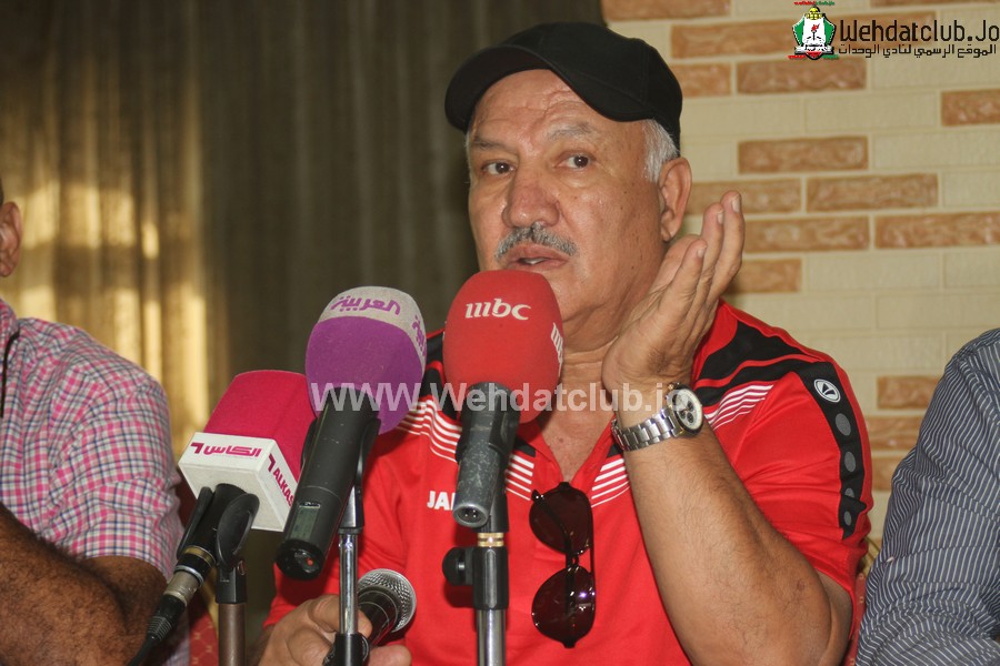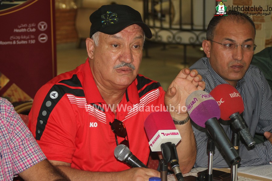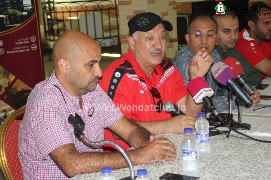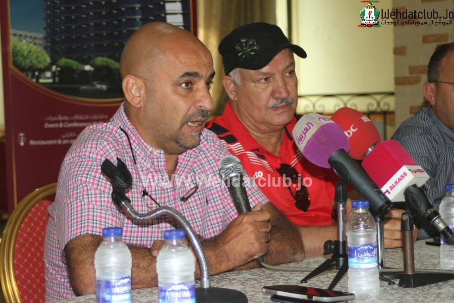 الوحدات يقدم المدير الفني العراقي اكرم سلمان امام وسائل الاعلام