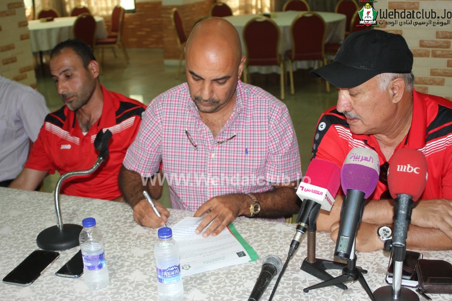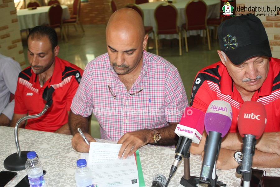 وقع المدير الفني العراقي اكرم سلمان والمدرب غياث التميمي رسمياً على كشوفات نادي الوحدات في المؤتمر الصحفي الذي عُقد مساء اليوم بحضور رئيس النادي طارق خوري و اعضاء مجلس الاداره زياد شلبايه و عوض الاسمر وزيد ابو حميد وغصاب خليل ومدير الفريق محمد جمال و عدد من الصحفيين.