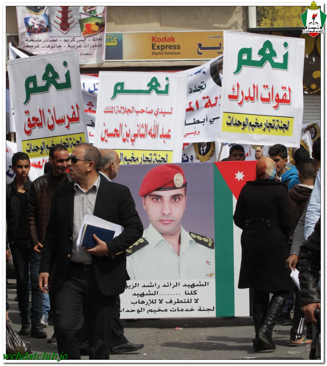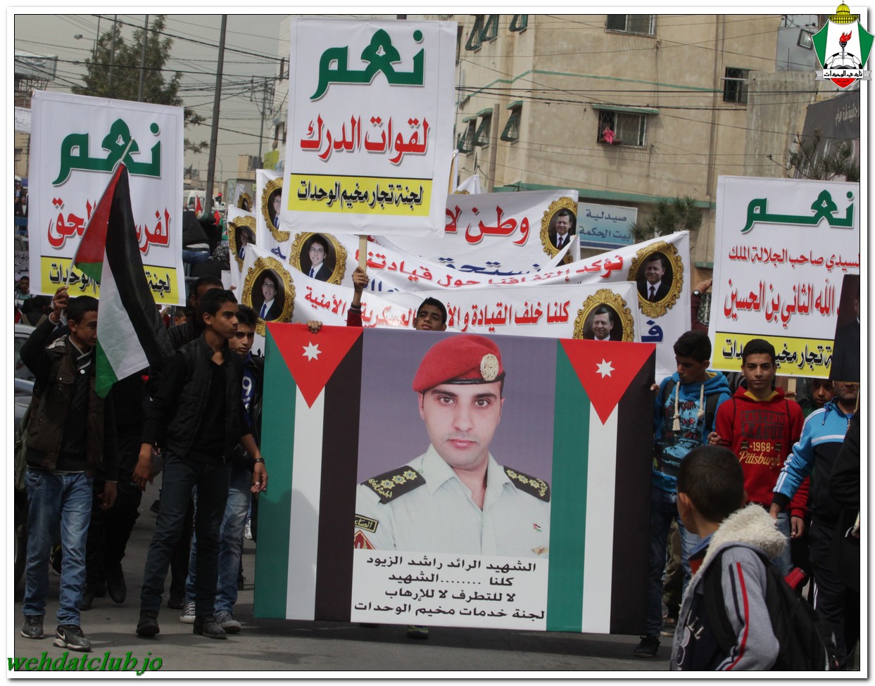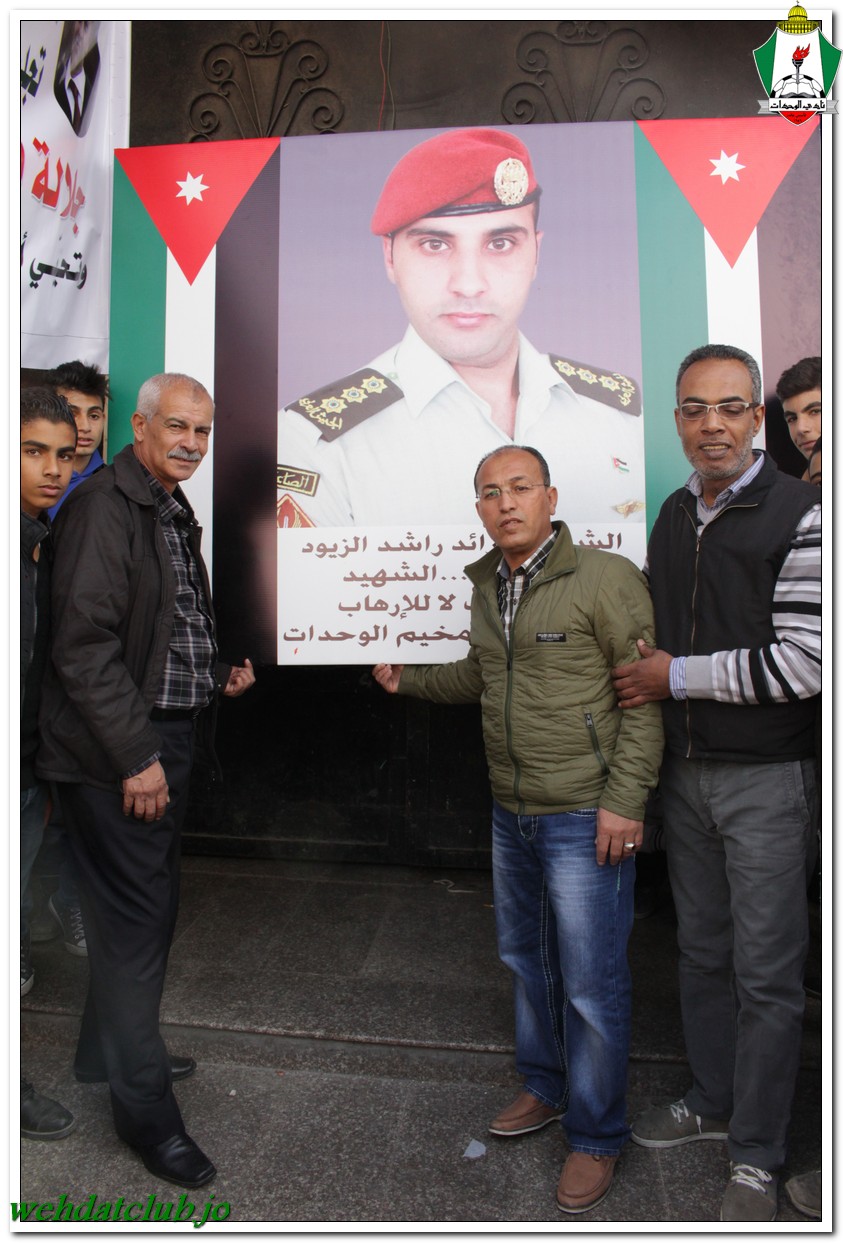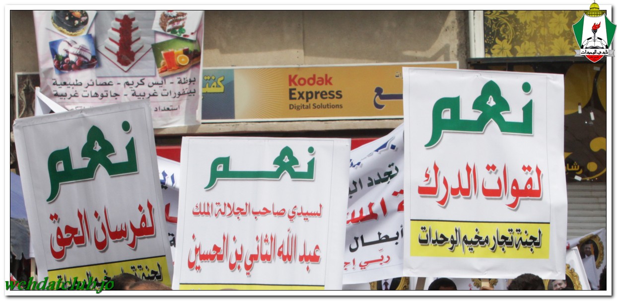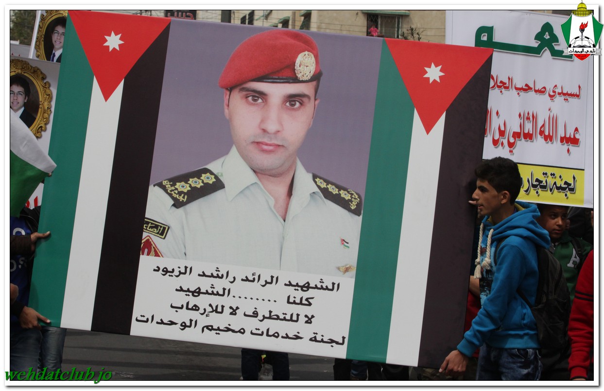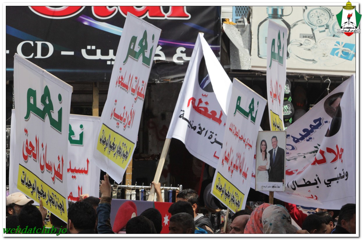 أكد أهالي مخيم الوحدات وفعالياته الشعبية عن وقوفهم وتأيدهم لجلالة الملك عبد الله الثاني بن الحسين المعظم، وللقوات الأمنية ورفضها التام والقاطع للتطرف والإرهاب، وذلك خلال المسيرة الجماهيرية الكبيرة التي انطلقت من أمام مبنى لجنة الخدمات في شارع سمية مروراً بنادي الوحدات وحتى الوصول إلى المركز الأمني.