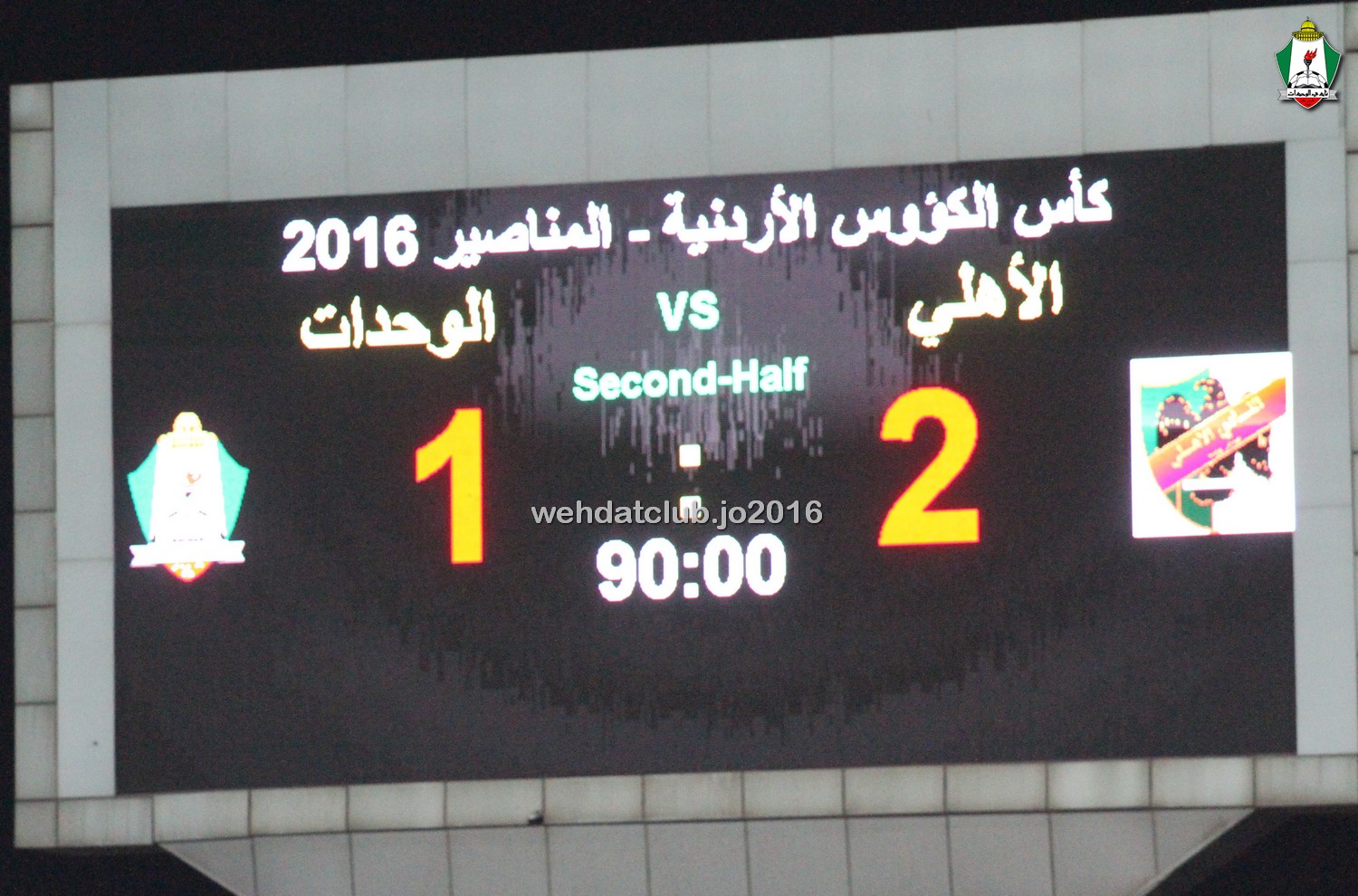 وسجل هدف الوحدات حسن عبد الفتاح (38) فيما سجل هدفي الاهلي محمود مرضى (13) و يزن ثلجي (78)