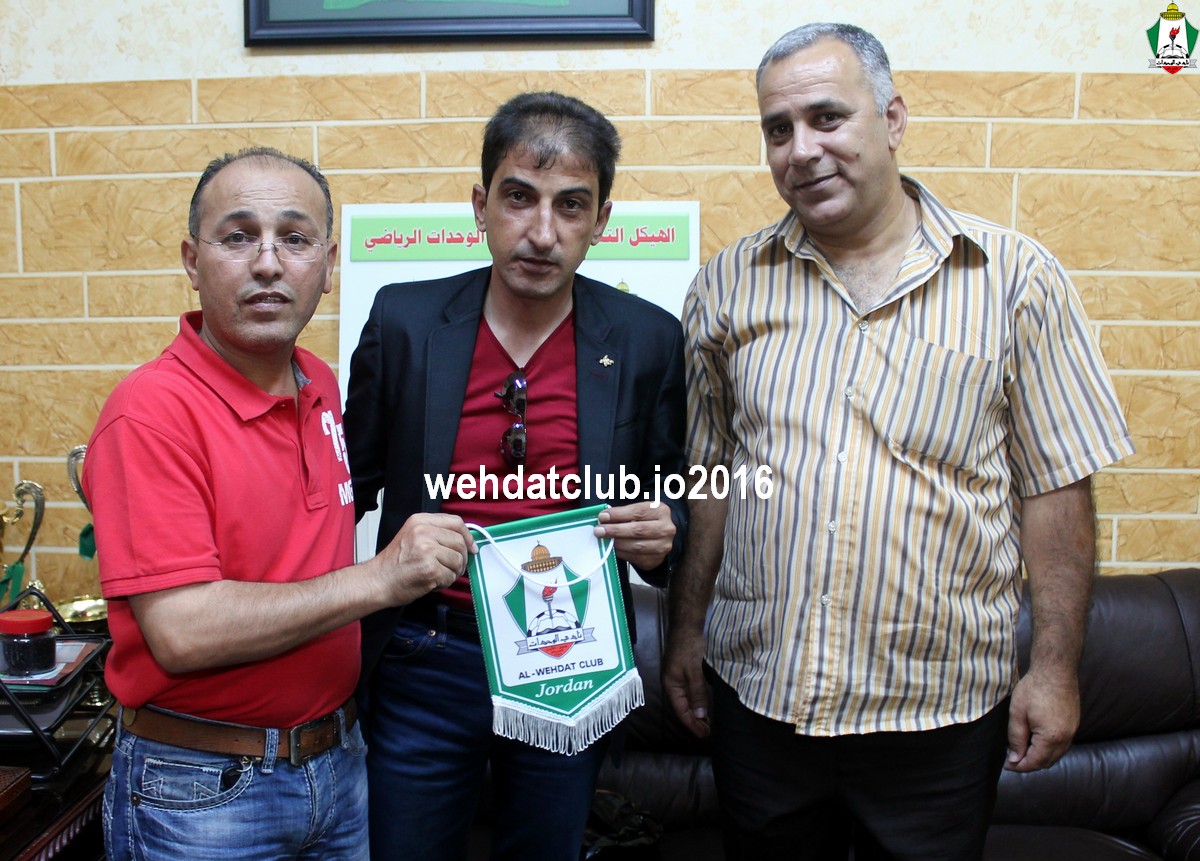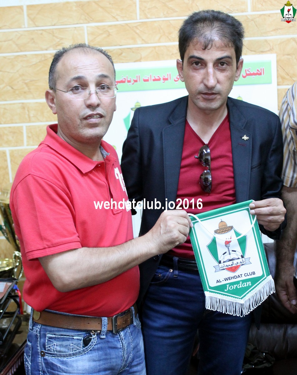 وفي نهاية الزيارة قدم أبو غنام درع الملتقى تسلمه أمين السر عوض الأسمر، وبادله الأسمر بتقديم علم نادي الوحدات.