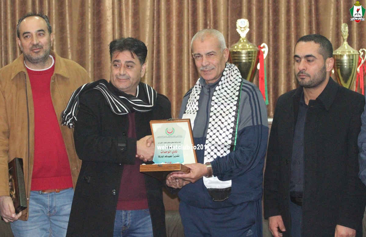 وبعد المباراه قدم عضو مجلس الاداره ومدير نشاط كرة القدم زياد شلبايه درع النادي لرئيس الوفد وقام كذلك رئيس الوفد بتقديم درع المركز لنادي الوحدات وتسلمه عضو الاداره زياد شلبايه .