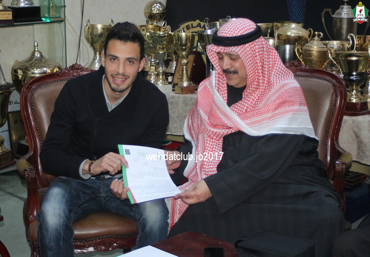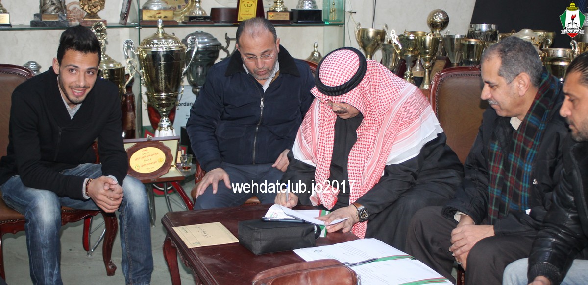 وجرى التوقيع بمقر النادي في مخيم الوحدات بحضور امين سر النادي عوض الاسمر و مدير نشاط كرة القدم زياد شلباية و المنسق الاعلامي بسام شلباية بالاضافة الى مندوب نادي السالمية الكويتي عضو مجلس الادارة السيد عبداللطيف ابراهيم السريع