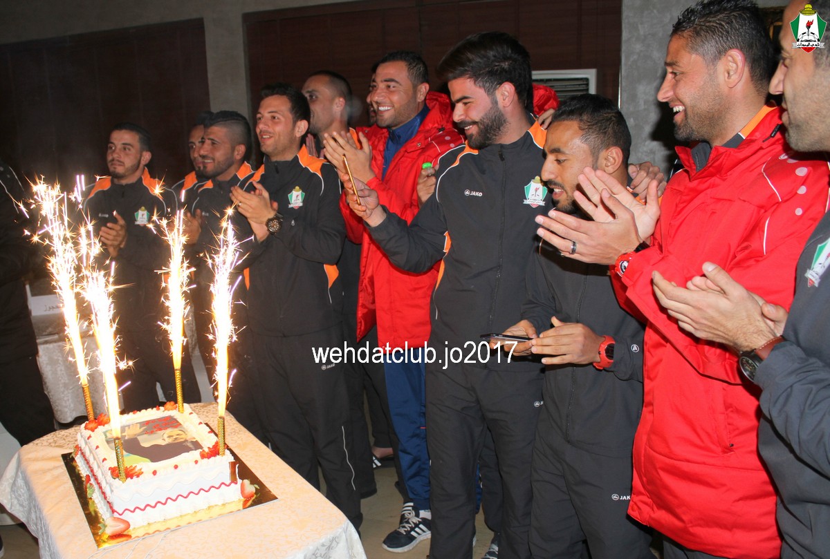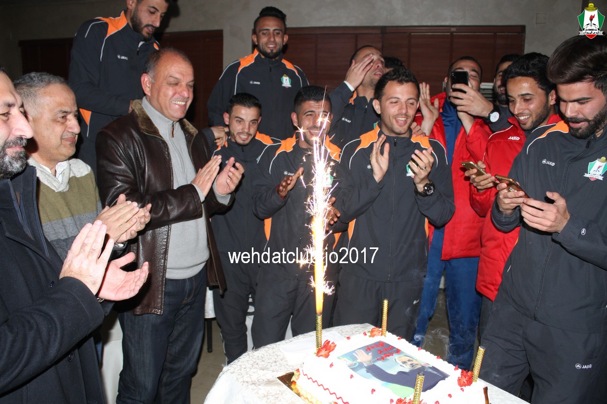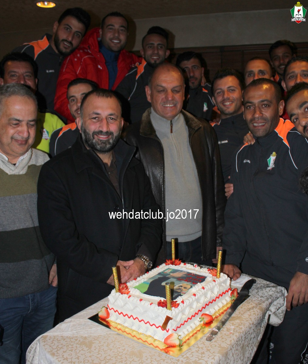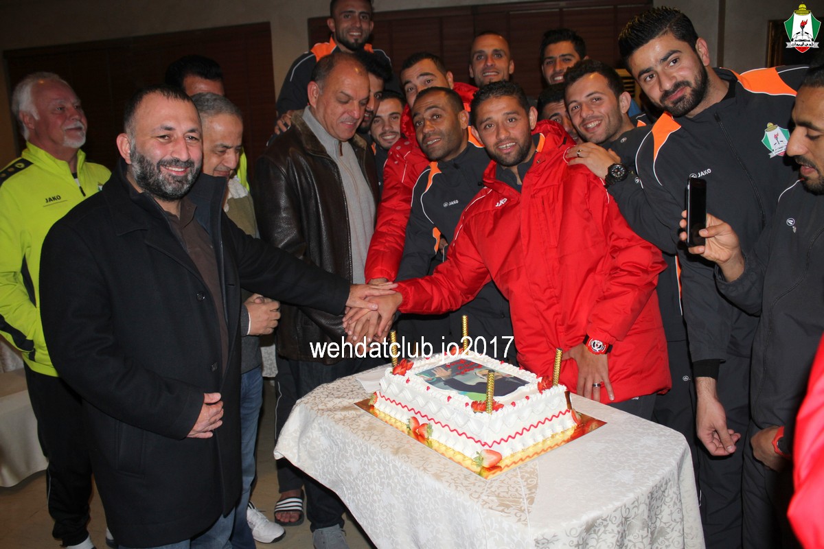 صادف مساء اليوم 2-2-2017 عيد ميلاد المدير الفني للفريق الأول الكابتن عدنان حمد ، وبهذه المناسبة احتفل لاعبوا نادي الوحدات والجهاز الفني للفريق بحضور نائب رئيس النادي الدكتور بشار الحوامدة ، وأقيم الحفل في معسكر الفريق المقام بأحد فنادق العاصمة عمان إستعداداً لمباراة الحسين إربد ضمن الجولة الخامسة والأخيرة من كأس الأردن 2017 والتي تقام عصر غد الجمعة على ملعب الملك عبدالله الثاني بمنطقة القويسمة بتمام الساعة الثالثة ، وحظي الحفل بأجواء جميلة ومحبة غمرها الفرح والبهجة والسرور التي كانت واضحة على جميع.