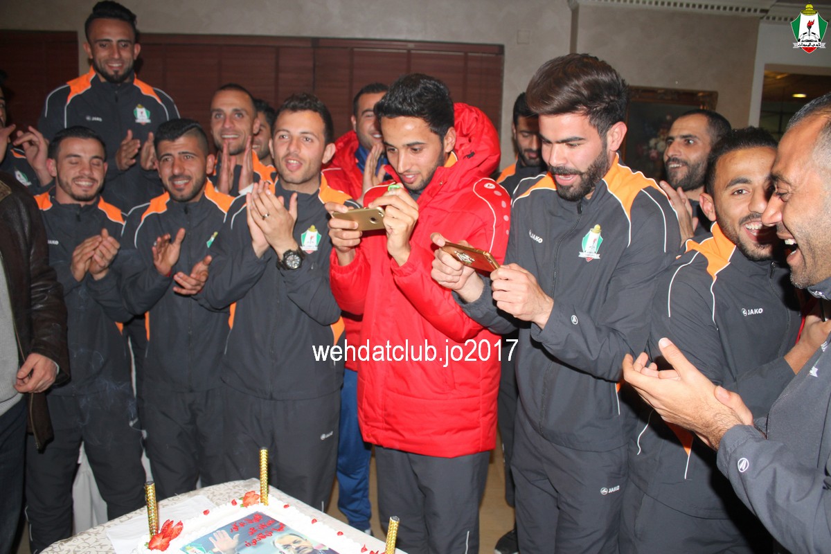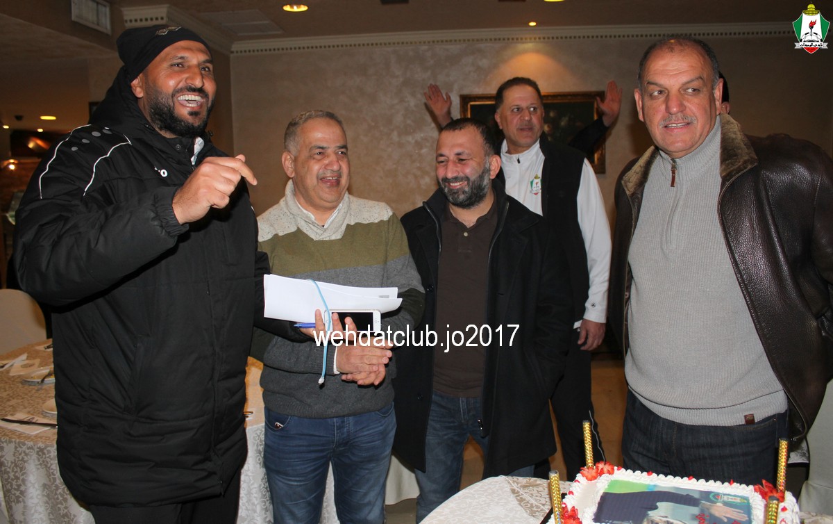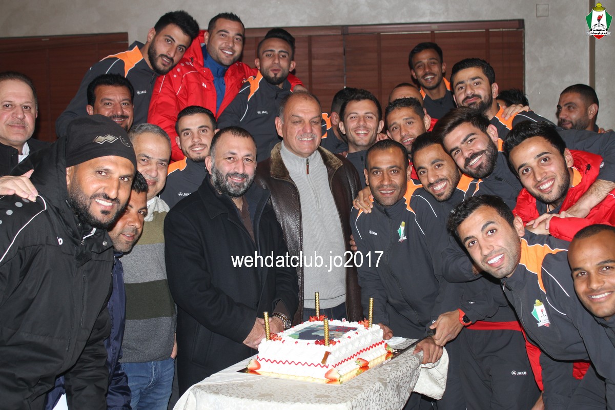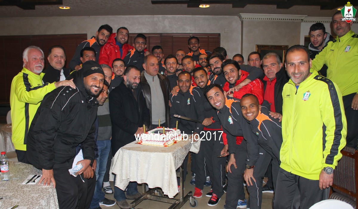 صادف مساء اليوم 2-2-2017 عيد ميلاد المدير الفني للفريق الأول الكابتن عدنان حمد ، وبهذه المناسبة احتفل لاعبوا نادي الوحدات والجهاز الفني للفريق بحضور نائب رئيس النادي الدكتور بشار الحوامدة ، وأقيم الحفل في معسكر الفريق المقام بأحد فنادق العاصمة عمان إستعداداً لمباراة الحسين إربد ضمن الجولة الخامسة والأخيرة من كأس الأردن 2017 والتي تقام عصر غد الجمعة على ملعب الملك عبدالله الثاني بمنطقة القويسمة بتمام الساعة الثالثة ، وحظي الحفل بأجواء جميلة ومحبة غمرها الفرح والبهجة والسرور التي كانت واضحة على جميع.