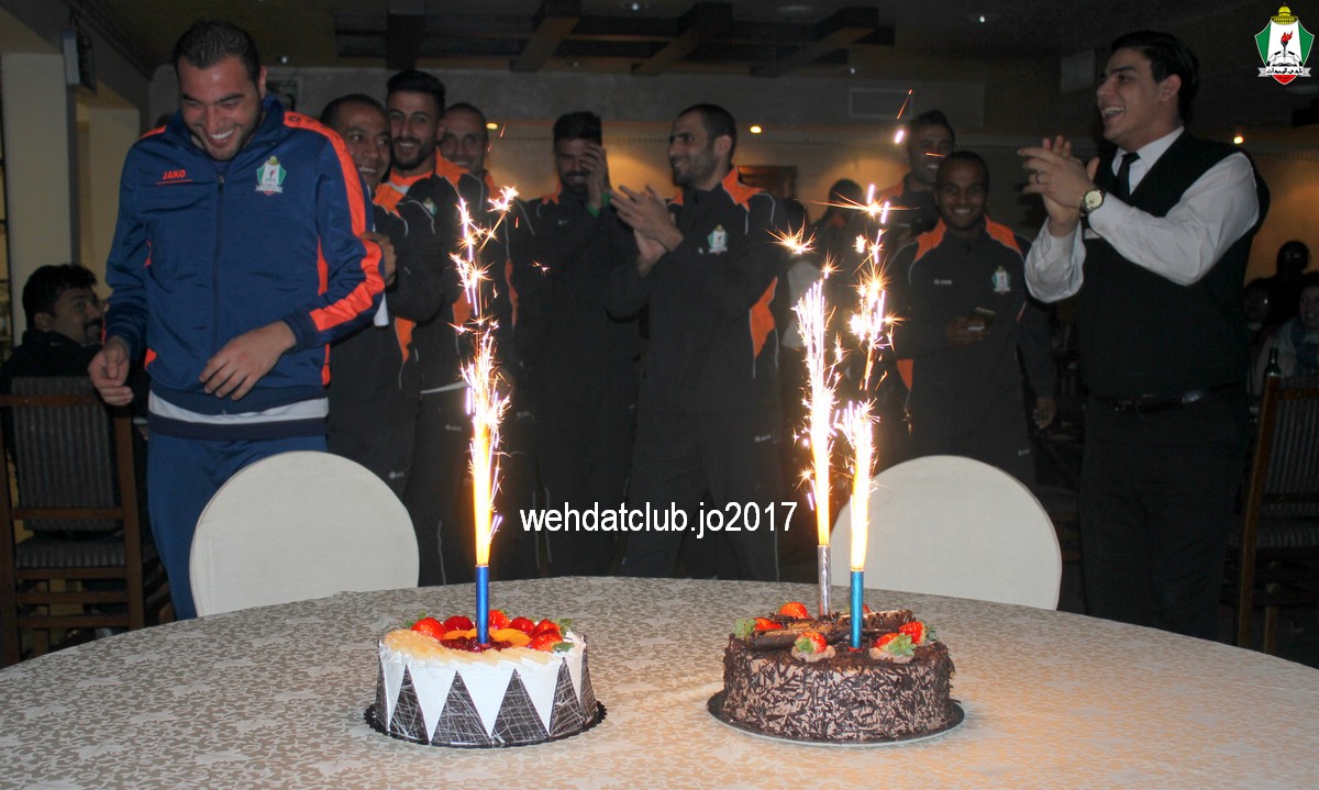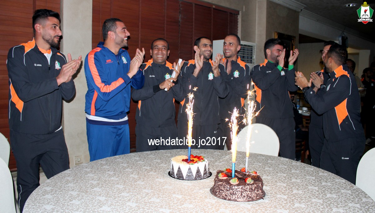 صادف مساء أمس 14-2-2017 عيد ميلاد حارس مرمى الفريق الأول الكابتن عامر شفيع ، وبهذه المناسبة احتفل لاعبوا نادي الوحدات والجهاز الفني للفريق ، وأقيم الحفل في معسكر الفريق المقام بأحد فنادق العاصمة عمان إستعداداً لمباراة سحاب ضمن الجولة الثالثة عشر من دوري المناصير الأردني للمحترفين 2017 والتي تقام مساء غد الخميس على ملعب الملك عبدالله الثاني بمنطقة القويسمة بتمام الساعة الخامسة والنصف ، وحظي الحفل بأجواء جميلة ومحبة غمرها الفرح والبهجة والسرور والتي كانت واضحة على جميع.