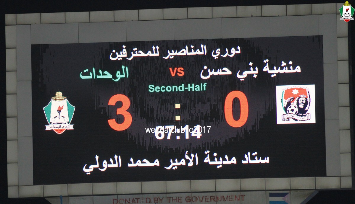 وسجل اهداف المباراة احمد ماهر بالدقيقة 21 و منذر ابو عمارة بالدقيقة 53 و حسن عبدالفتاح بالدقيقة 68 وبهذا الفوز رفع الوحدات رصيده الى 33 نقطة وحيدآ بصدارة الترتيب فيما تجمد رصيد المنشية عند النقطة 27 بالمركز الرابع.