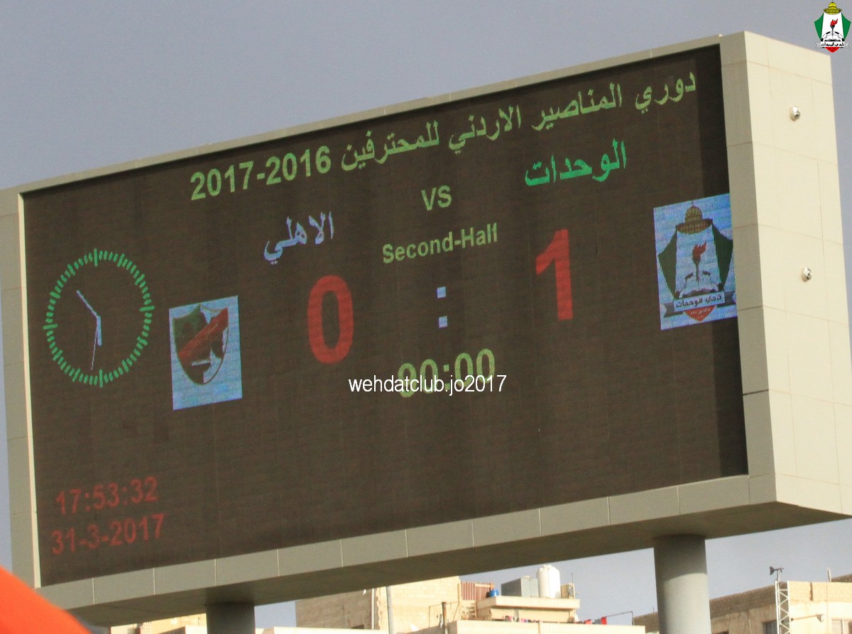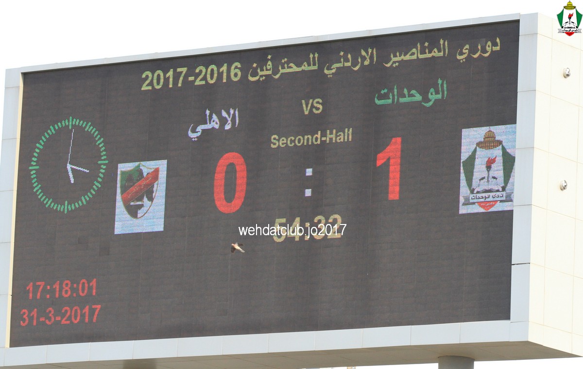 وسجل هدفي المباراة حسن عبد الفتاح بالدقيقة “55”للوحدات و محمود مرضى بالدقيقة “92” ليرفع الوحدات رصيده الى 34 نقطة وحيدآ بصدارة الترتيب واصبح رصيد الاهلي 20 نقطة بالمركز الثامن.