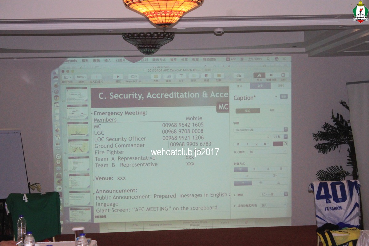 وجاء هذا الاجتماع الذي يسبق المباريات الآسيوية بالعادة برئاسة المراقب الصيني شين ليانغ شين والأخير استعرض الترتيبات الإدارية كافة، وقدم تعليماته إلى الوفد الإداريي الحاضر من الجانبين لتطبيقه في هذه المباراة المهمة والتي يطمح الوحدات فيها إلى تسجيل فوز ثالث ويقربه من التاهل كمتصدر للمجموعه، فيما يحاول صحم تصحيح مساره والابقاء على اماله في التاهل والمنافسه.