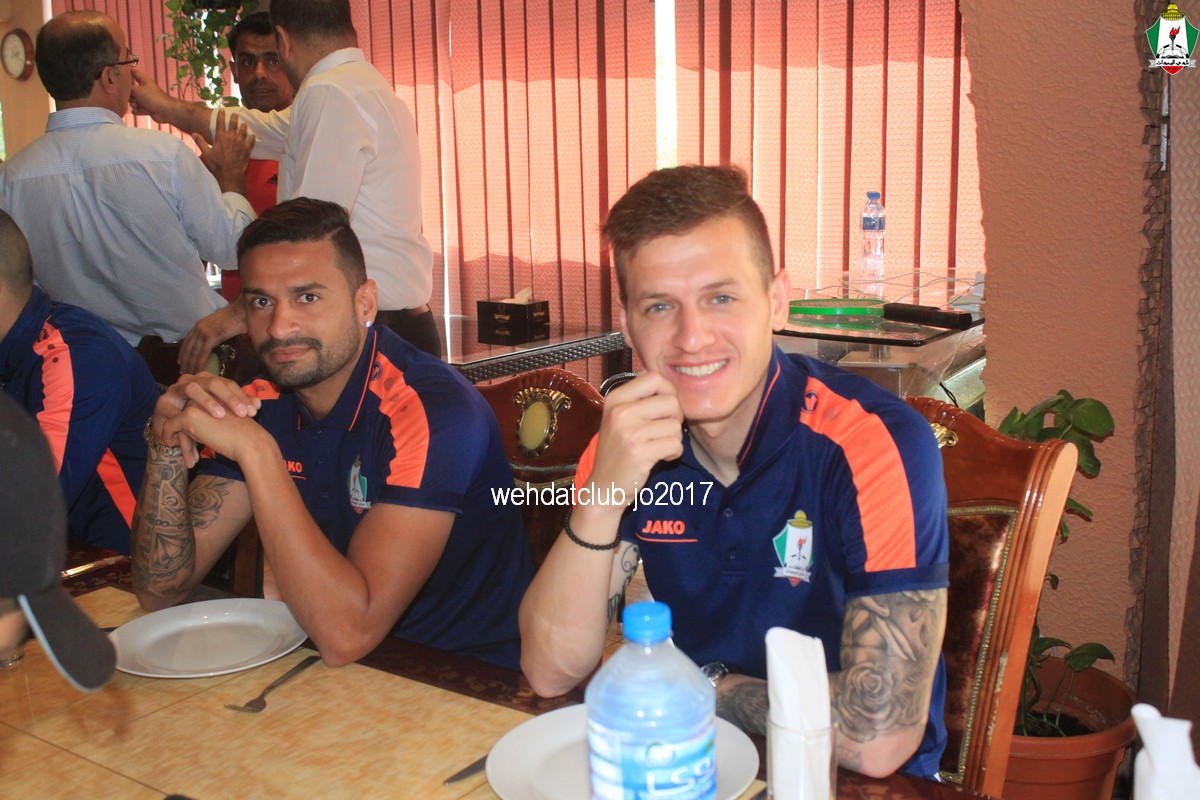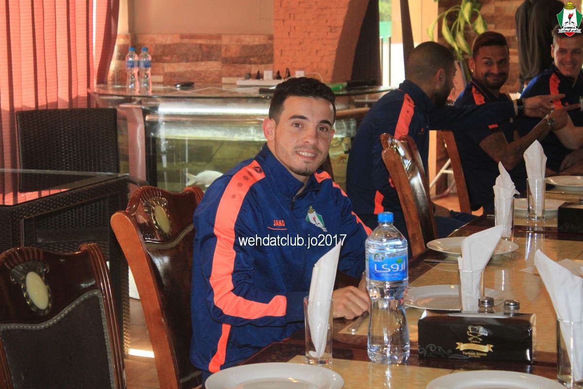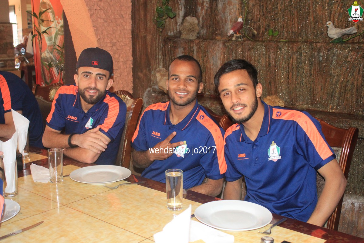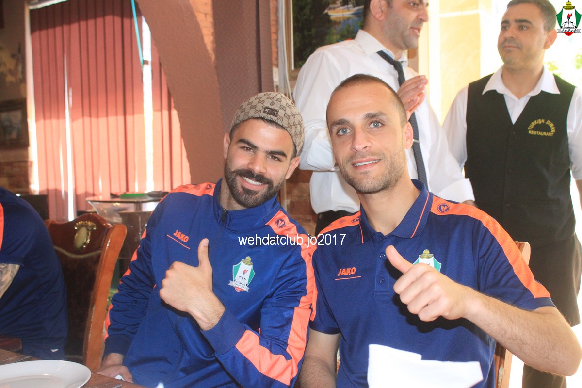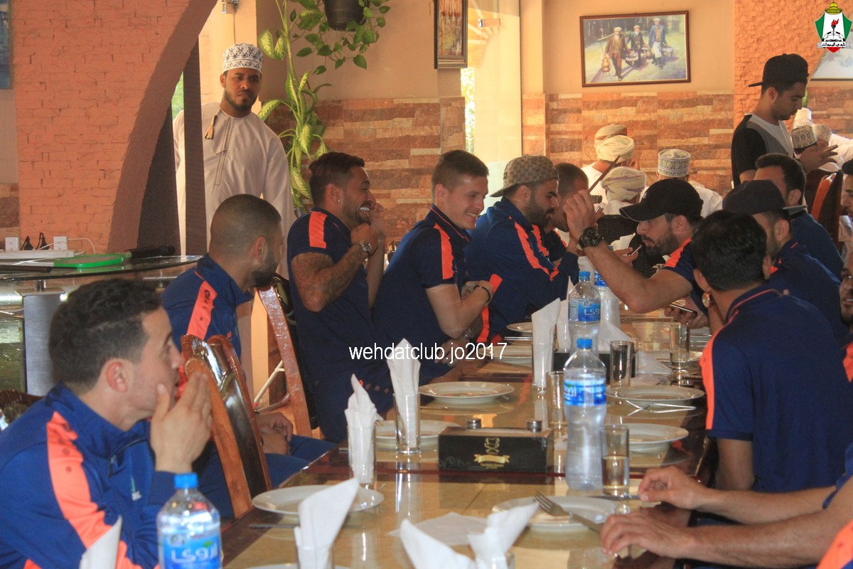 احتفى الوفد الاداري للوحدات برئاسة المهندس علي خليفه واداري الوفد زيد ابو حميد والمنسق الاعلامي بسام شلبايه بلاعبي الفريق ظهر اليوم في المطعم التركي في مسقط وسط ارتياح ومعنويات مرتفعه للفريق بعد التعادل مع فريق صحم العماني والمحافظه على الصداره الاسيويه . وبعدها قام الفريق بتناول الكنافه من حلويات كنافاتي وينطلق بعدها الى مطار مسقط الدولي ليكمل رحلة العوده الى عمان لبداء الاستعداد لمواجهة الفيصلي يوم السبت . وقد بدى على اللاعبين الارتياح والروح المعنويه العاليه وتكاتف الجميع لتقديم افضل ماعندهم يوم السبت.
