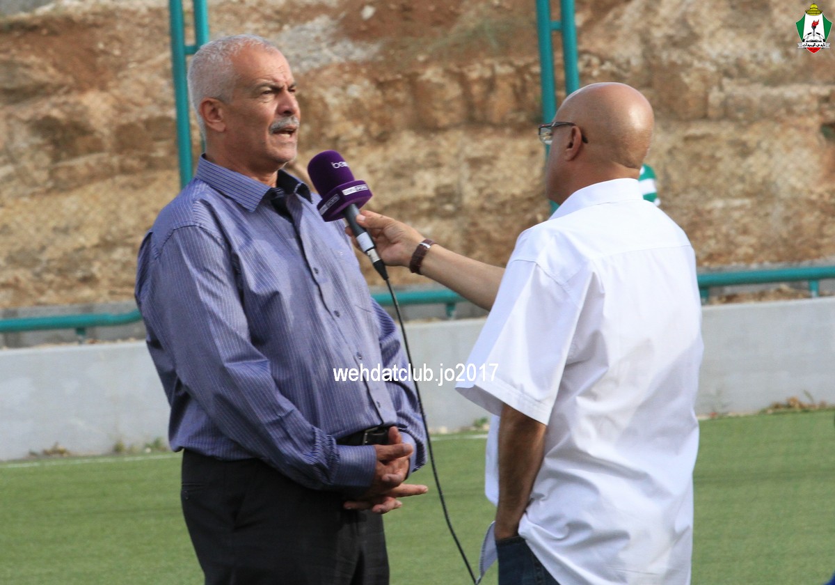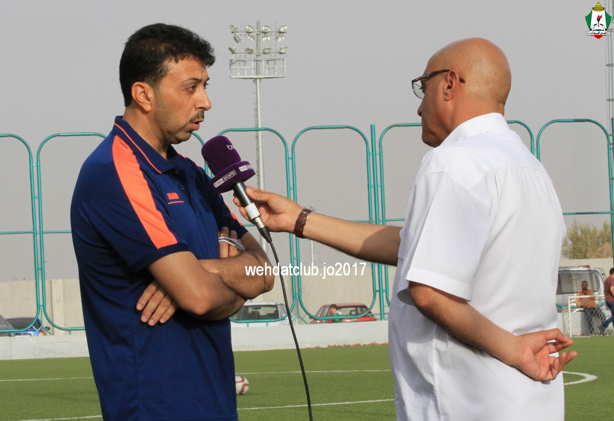 “في بداية كلامي اود ان اذكر نقطة ولا اريد فيها ان أثير احساس الجمهور (من شدة اشتياقي لملعب النادي وبعد 7 سنوات لم ادخل فيها ملعب النادي كدت ان ابكي لمنظر الملعب) والله لن نتوانا في بذل اقصى طاقة لدينا لاسعادكم اصبروا علينا الجهاز الفني لا يملك العصى السحرية ،وهناك امور كثيرة بحاجة الى تعديل و تصليح وصعب جدآ ان يتم الاصلاح و التعديل خلال 24 او 48 ساعة وتدرب اليوم الفريق نصف تدريب فعلي و غدآ تدريب خفيف لتعديل بعض الاخطاء و بعد غدا المباراة ،ولكن اعد الجمهور ان اي لاعب لايكون رجل في الملعب لن يدخل ارضية الملعب واتمنى ان نفوز بالمباراة ولكن الامور ليست سهلة وعند وضع ظروف الفريق مع ظروف الفرق الاخرى بالميزان الفوراق تميل للفرق الاخرى وسنبذل قصارى جهدنا لاسعادكم وتحقيق الفوز وهذه النقطة الاولى و النقطة الثانية اتمنى من الجمهور عدم الاستعجال علينا ليس خوفآ وانا على استعداد لتحمل المسؤولية و ادليت بتصريح لجميع وسائل الاعلام النادي يملك افضل منظومة كروية في الاردن لحصوله على اللقب جمهور لاعبين ادارة وتبقى المشكلة في الجهاز الفني وفي حالة الاخفاق تكون المشكلة فينا نحن كجهاز فني وبالذات المدير الفني جمال محمود ونطلب منكم ان تكونوا داعمين لنا وان تصبروا علينا قدر الامكان وتمرين الغد سيكون مغلق ليس من اجل الجمهور فوجود الجمهور يعطينا الدافع و الامان واغلاق التدريب غدآ لوجود عدة امور خاصة و سرية”.