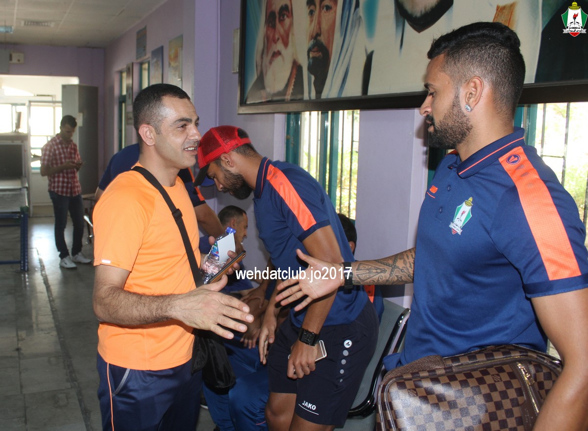 ويضم الوفد برئاسة رئيس النادي يوسف الصقور (المختار) وإداري الوفد المهندس علي خليفة ومدير نشاط كرة القدم للفريق الأول زيد أبو حميد ومدير العلاقات العامة إياد الشملتي و عصام محمود “مدرباً” و جبرين مناصرة “معالجا” و عامر نجم “مرافقاً للفريق” و محمد ذياب ”موفداً إعلامياً” لجريدة الوحدات الرياضي والموقع الرسمي إضافة إلى اللاعبين : (تامر صالح،باسم فتحي،طارق خطاب،أدهم القريشي،سعيد مرجان،حمزة الدردور،بهاء فيصل،فرانسيسكو توريس).