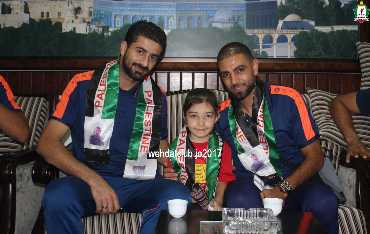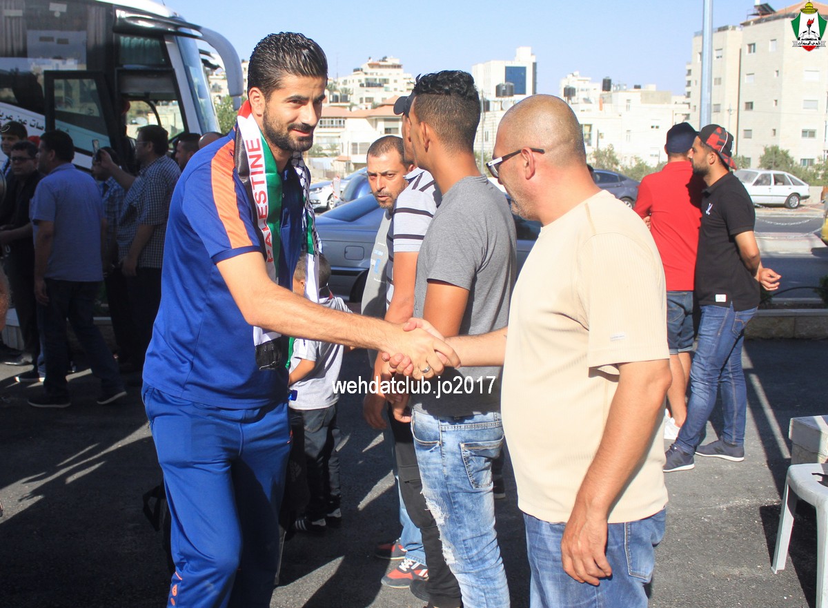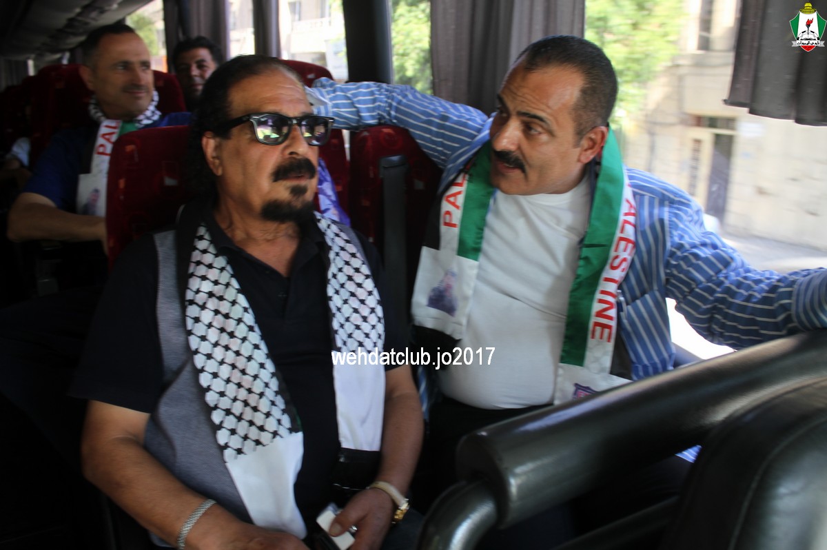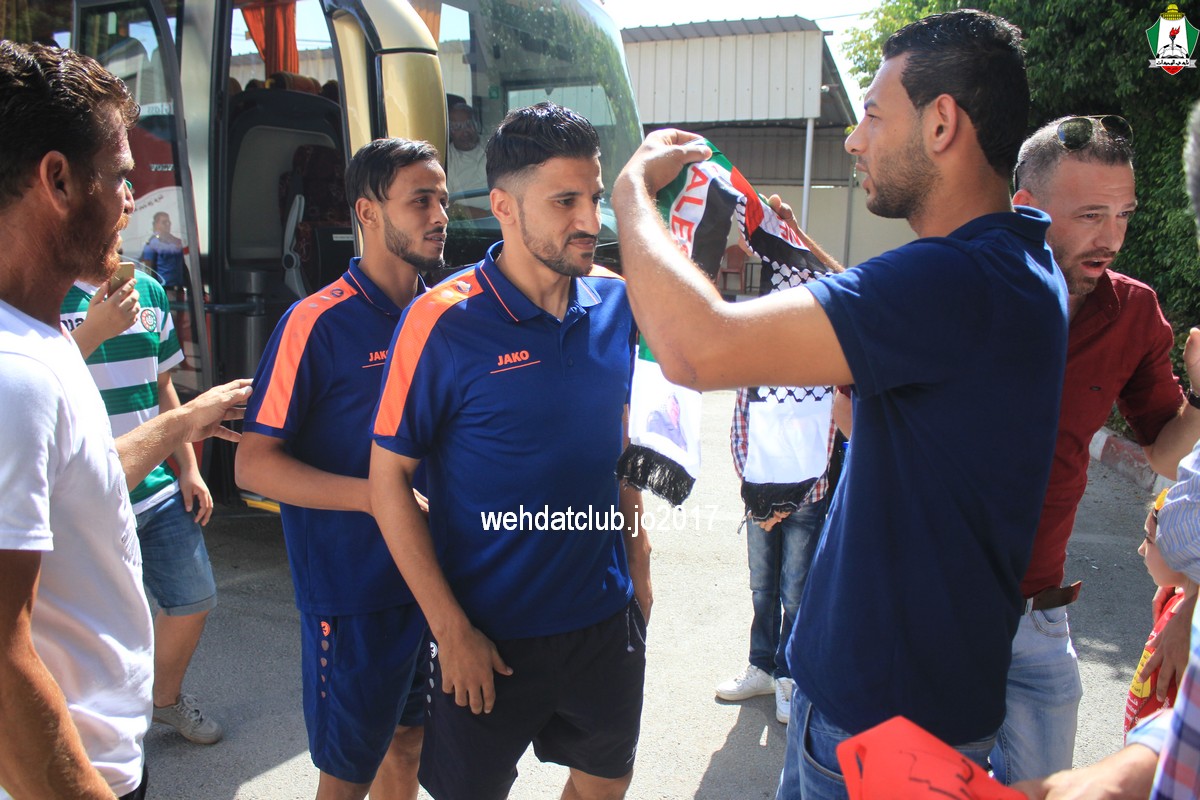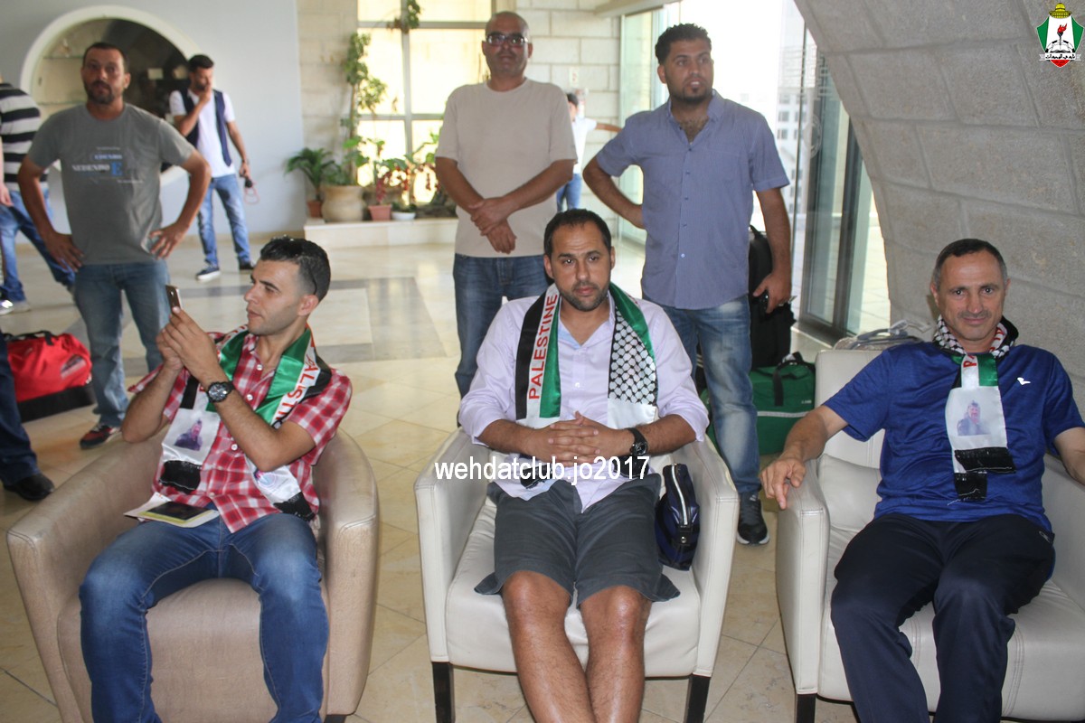 وكان باستقبال الوفد عند وصوله للجانب الفلسطيني ممثلي النادي الأمعري سعادة النائب جهاد طمليه رئيس النادي والسيد سلطان شتات أمين السر وبعض أعضاء الإدارة وهم يونس أبو الريش،حربي طمليه،كامل جبيل،أحمد عبد المحسن ، بالإضافة إلى السيد محمد الخليلي إعلامي النادي والسيد أسامة جبر رئيس اللجنة الاجتماعية بالنادي حيث قدموا كافة التسهيلات للفريق ومرافقته من معابر حدود أريحا إلى مقر إقامته، وعند وصول البعثة للفندق كان الإستقبال الحار من الجماهير الفلسطينية العريضة والعاشقة للمارد الأخضر مبهراً.