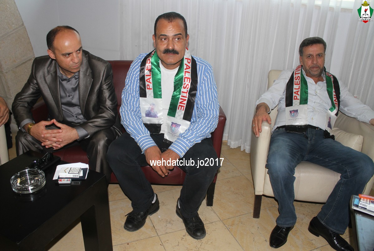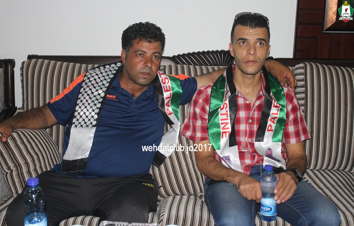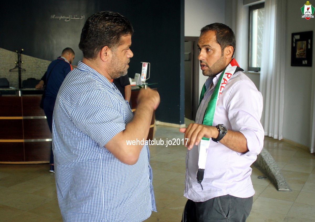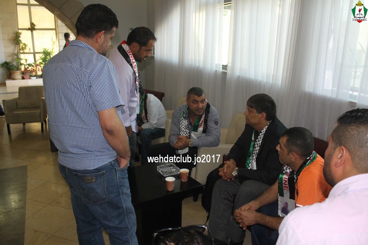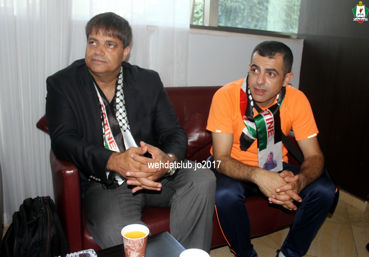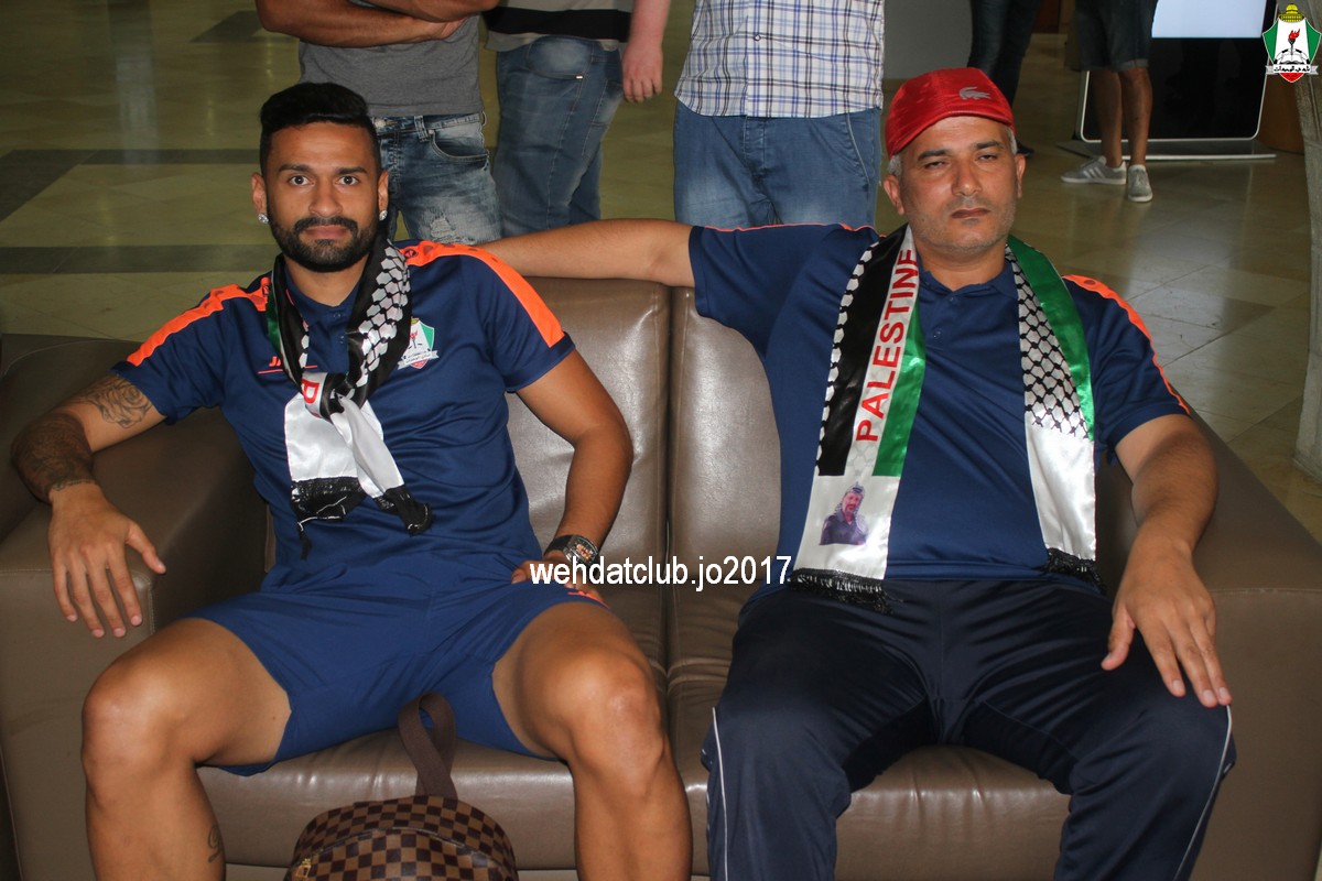 وكان باستقبال الوفد عند وصوله للجانب الفلسطيني ممثلي النادي الأمعري سعادة النائب جهاد طمليه رئيس النادي والسيد سلطان شتات أمين السر وبعض أعضاء الإدارة وهم يونس أبو الريش،حربي طمليه،كامل جبيل،أحمد عبد المحسن ، بالإضافة إلى السيد محمد الخليلي إعلامي النادي والسيد أسامة جبر رئيس اللجنة الاجتماعية بالنادي حيث قدموا كافة التسهيلات للفريق ومرافقته من معابر حدود أريحا إلى مقر إقامته، وعند وصول البعثة للفندق كان الإستقبال الحار من الجماهير الفلسطينية العريضة والعاشقة للمارد الأخضر مبهراً.