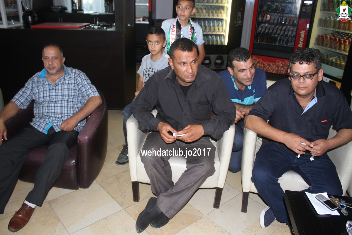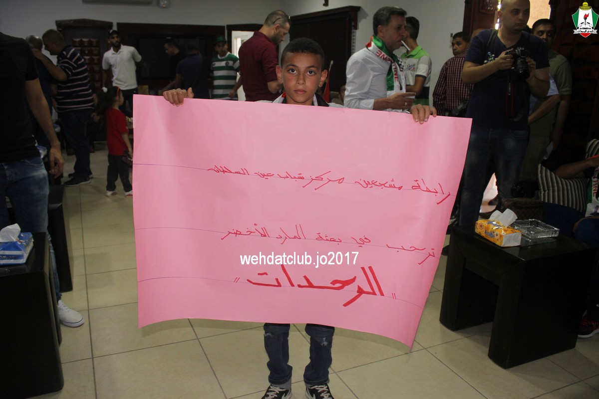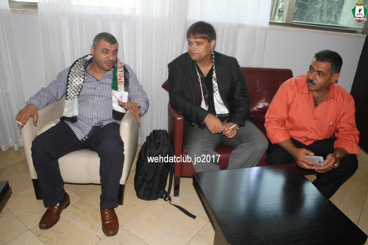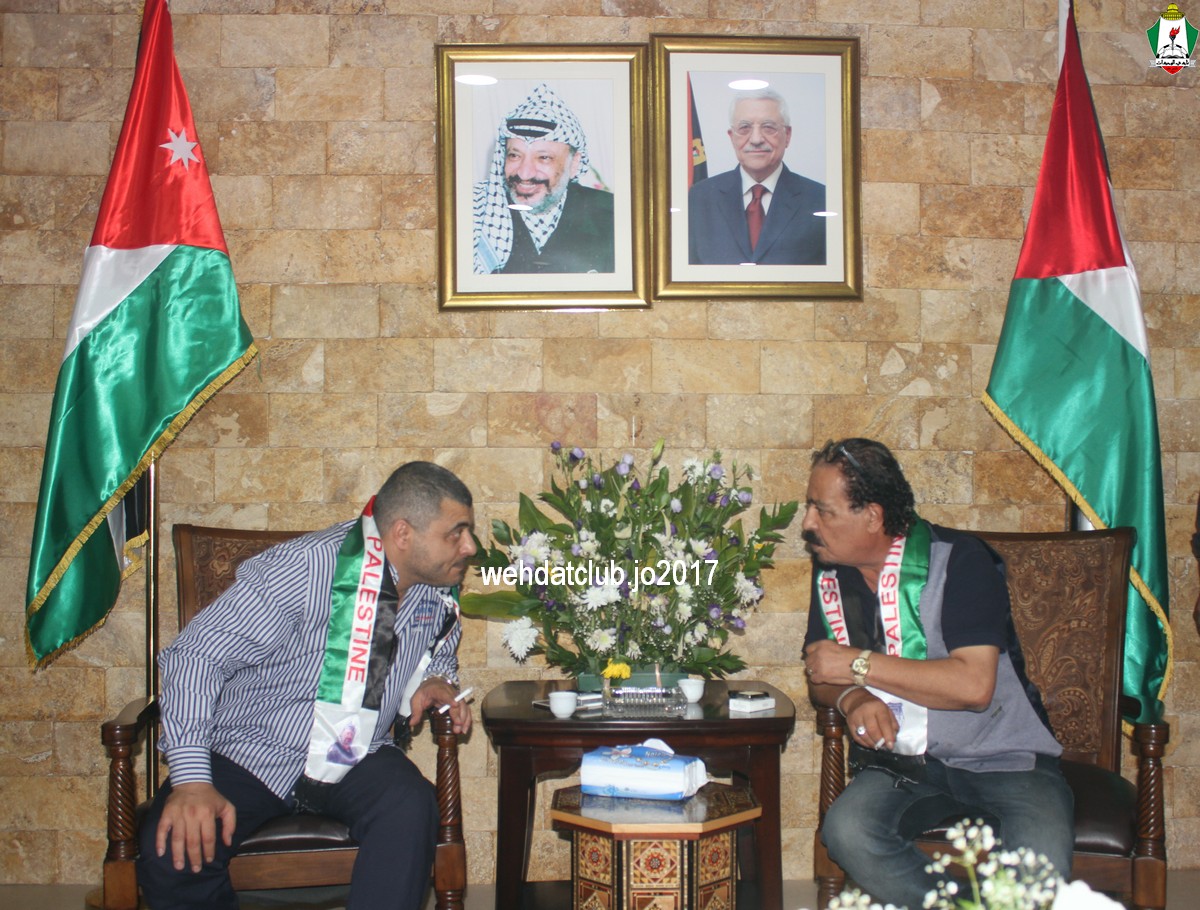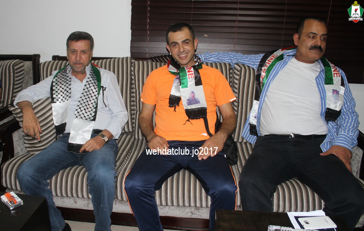 وكان باستقبال الوفد عند وصوله للجانب الفلسطيني ممثلي النادي الأمعري سعادة النائب جهاد طمليه رئيس النادي والسيد سلطان شتات أمين السر وبعض أعضاء الإدارة وهم يونس أبو الريش،حربي طمليه،كامل جبيل،أحمد عبد المحسن ، بالإضافة إلى السيد محمد الخليلي إعلامي النادي والسيد أسامة جبر رئيس اللجنة الاجتماعية بالنادي حيث قدموا كافة التسهيلات للفريق ومرافقته من معابر حدود أريحا إلى مقر إقامته، وعند وصول البعثة للفندق كان الإستقبال الحار من الجماهير الفلسطينية العريضة والعاشقة للمارد الأخضر مبهراً.