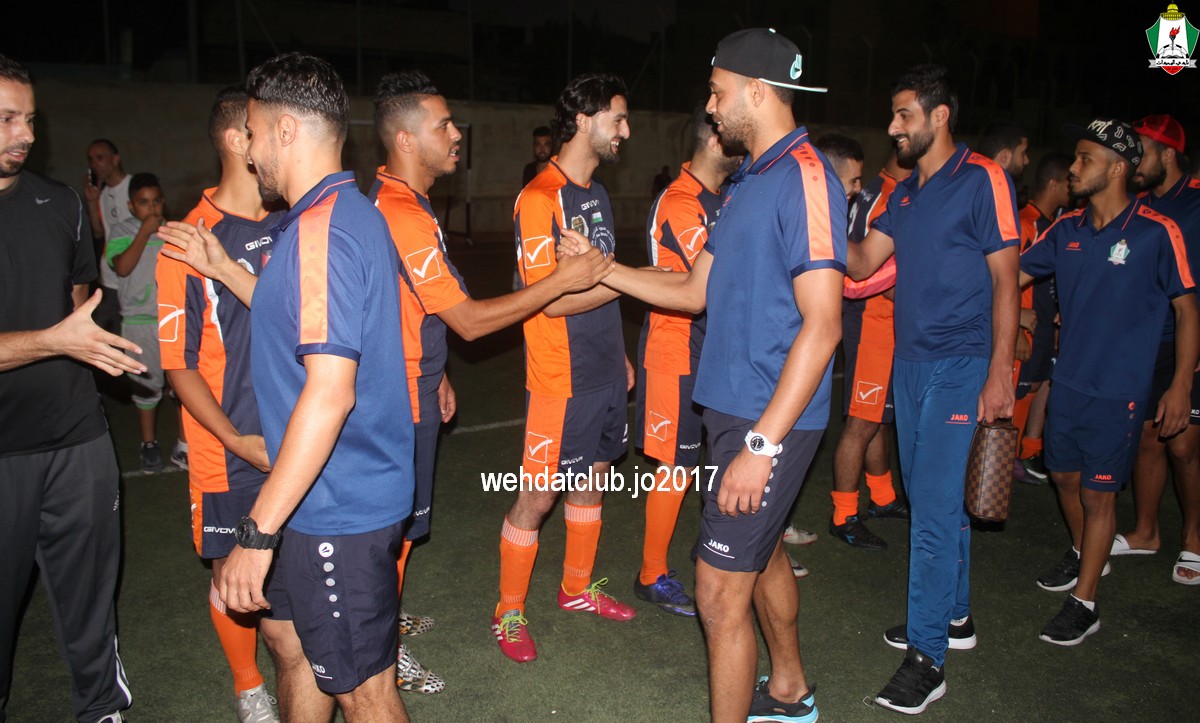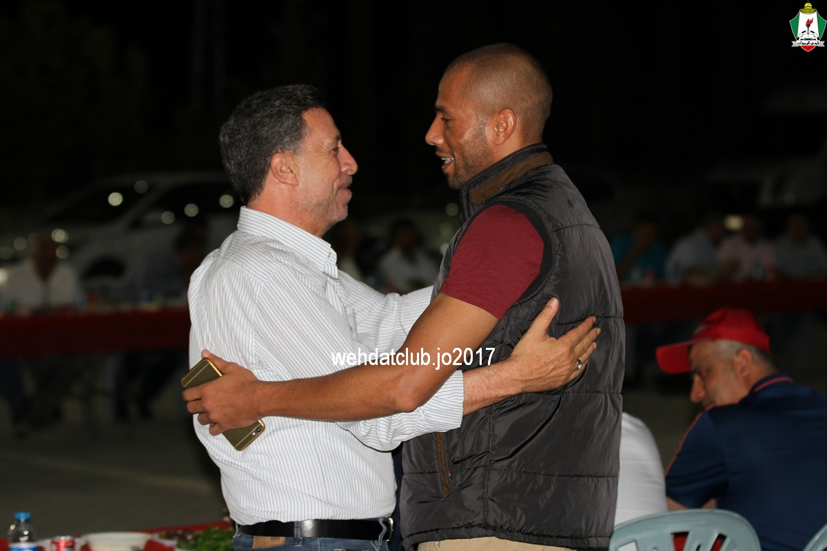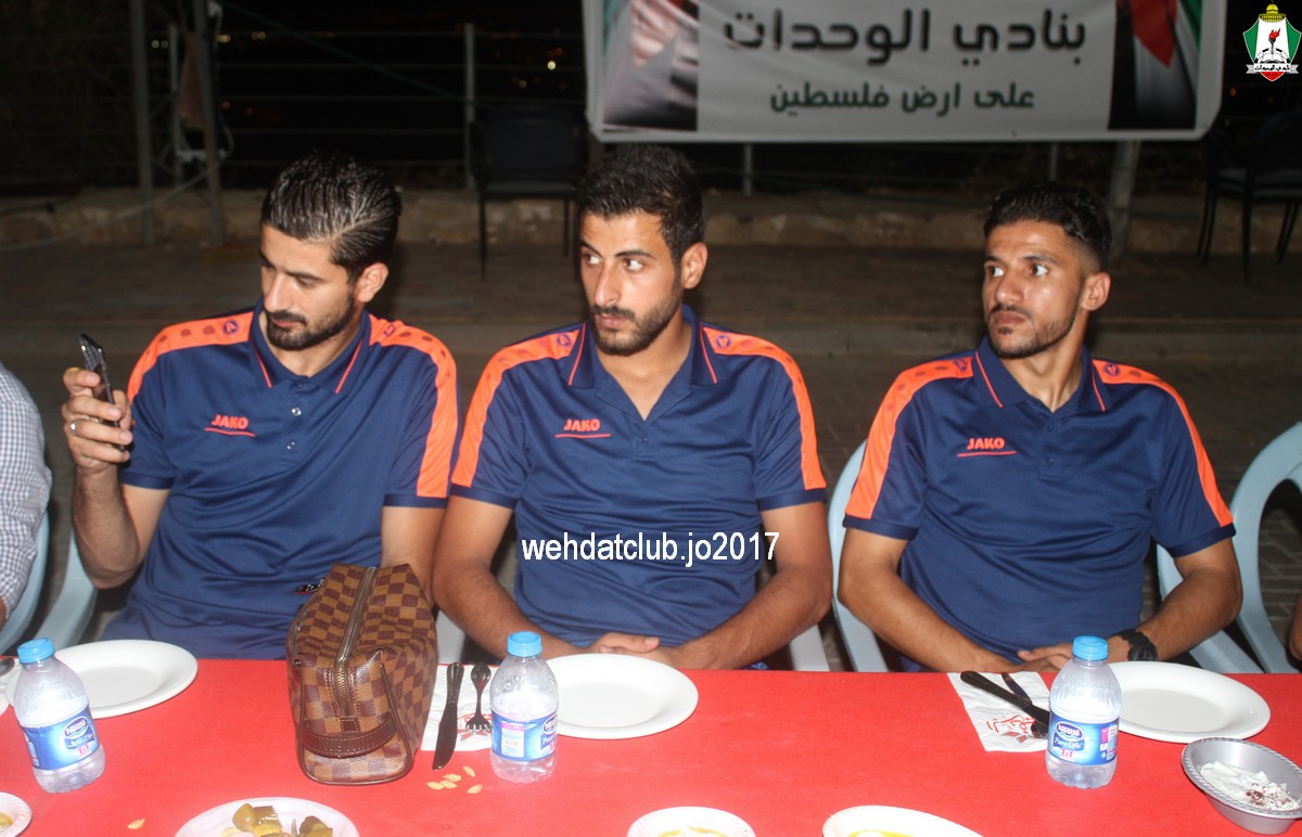 وفي كلمة لرئيس وفد الوحدات يوسف الصقور عبر فيها عن اعتزازه بقبول دعوة النادي الأمعري وأضاف بأننا في نادي الوحدات مواظبون على تلبية أي دعوة من الأندية الفلسطينية الشقيقة ، ورغم تأخر صدور التصاريح وتضارب الموعد مع تجهيزات الفريق الأول للموسم القادم إلاّ أن نادي الوحدات آثر على نفسه لتلبية دعوة النادي الأمعري الشقيق والمشاركة في مهرجان اعتزال اللاعب إيهاب أبو جزر.