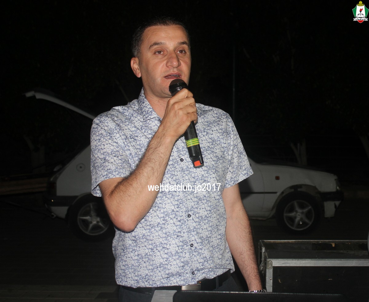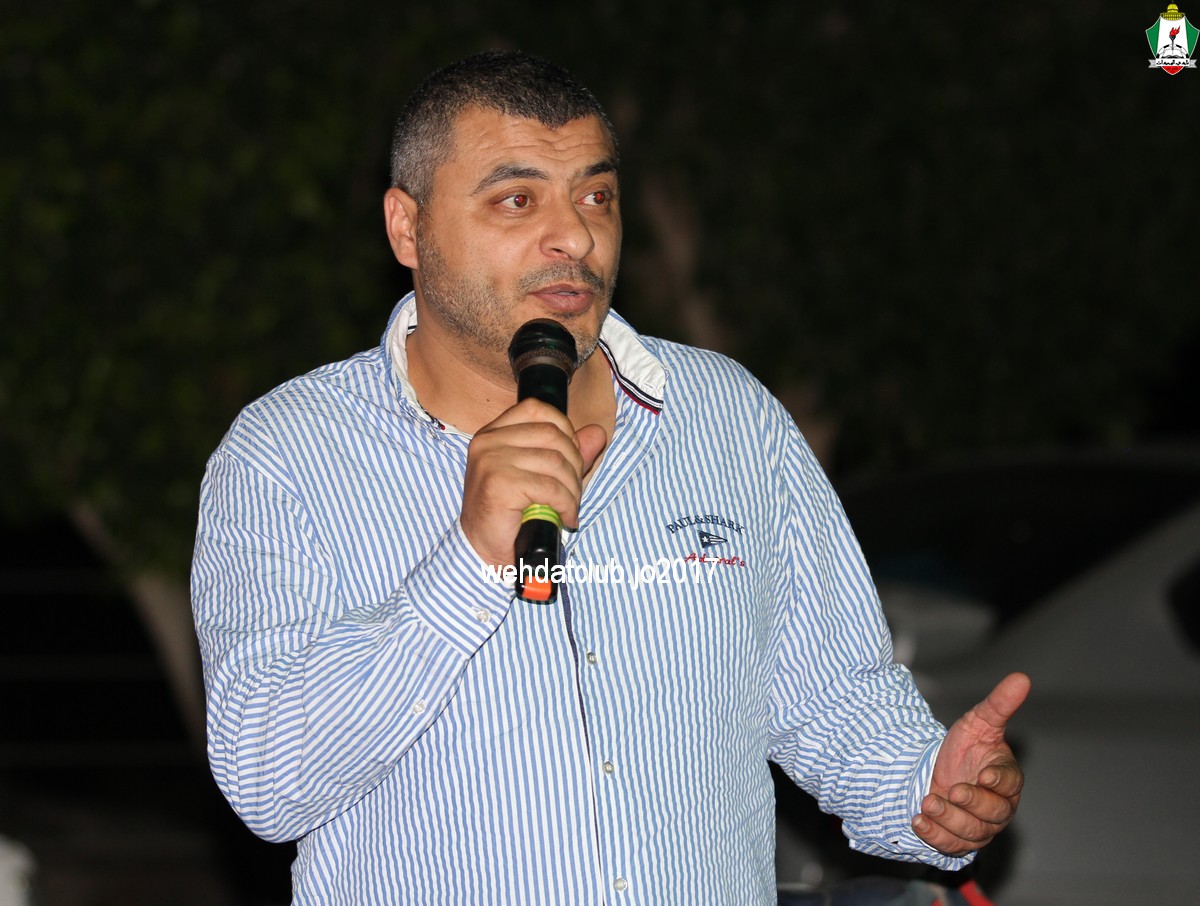 وفي كلمة لصاحب الدعوة السيد طارق النتشة رحب فيها بالضيوف الكرام وبالأخص وفد نادي الوحدات وعبر عن اعتزازه في نادي الوحدات ومدى العلاقة الطيبة بينهما ومدى جسور التواصل وأن الوحدات دائما مواظب على استضافة الوفود الفلسطينية.