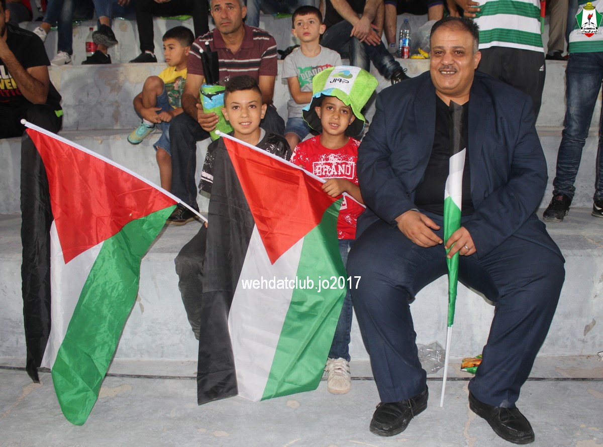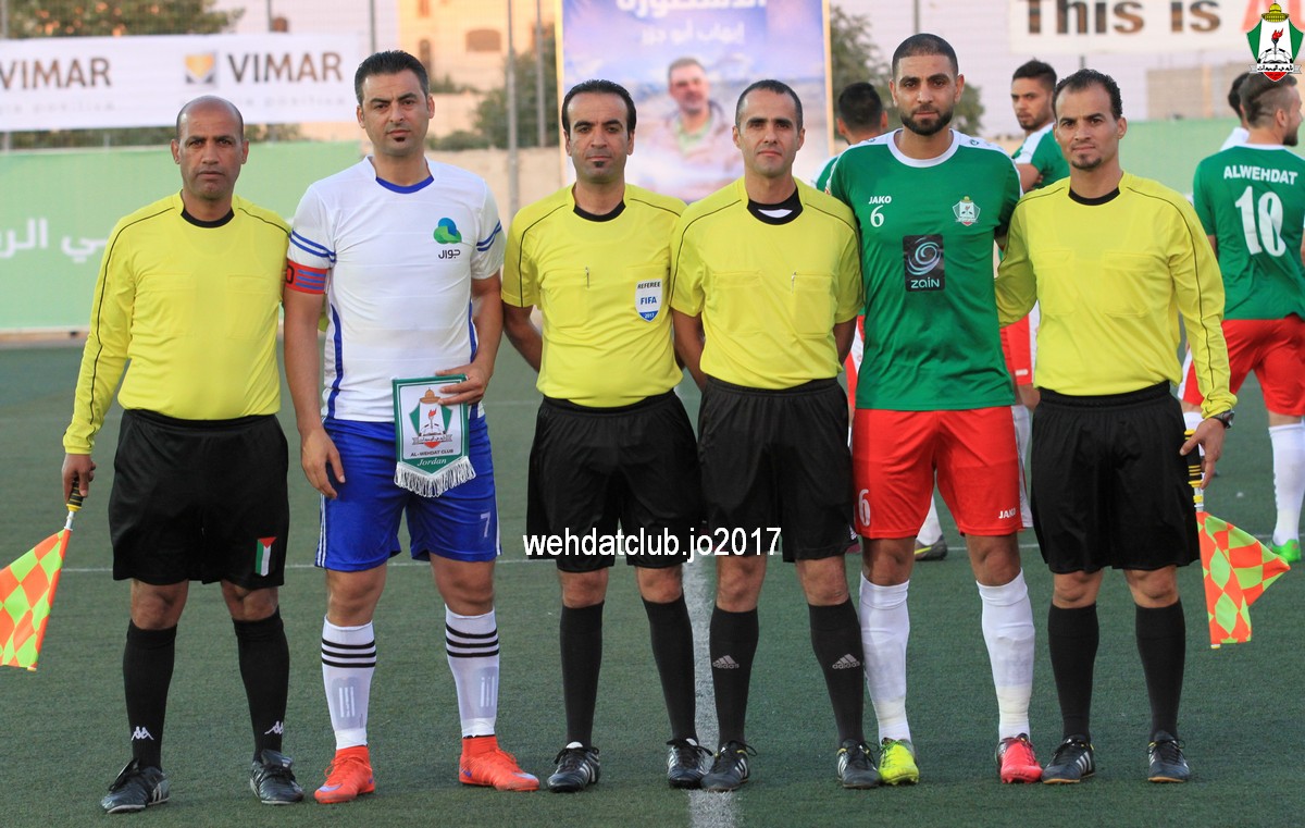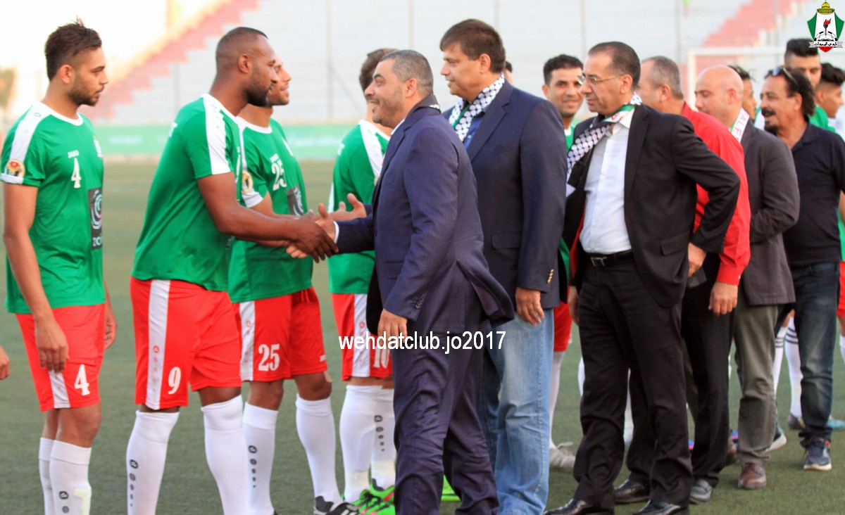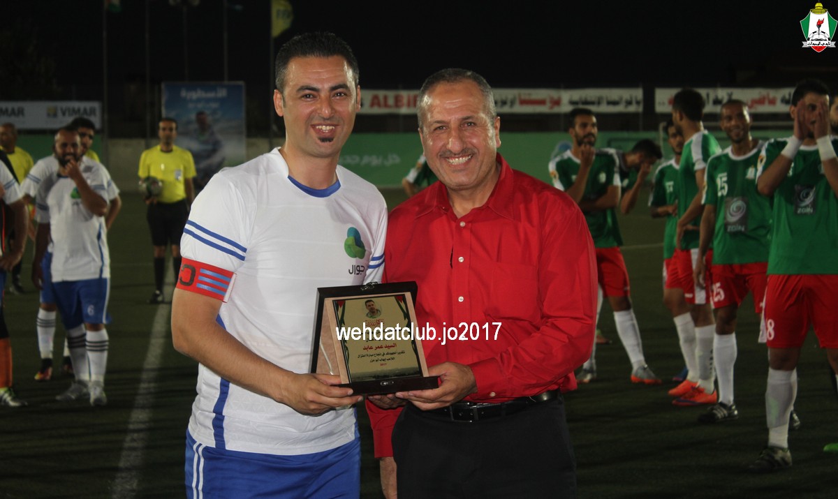 وبعد نهاية الشوط الأول تبادل رئيسان الناديان الدروع التذكارية بينهما ، وقدم العديد من حبين نادي الوحدات بالاراضي المحتلة الدروع والهدايا التذكارية لرئيس النادي يوسف الصقور.