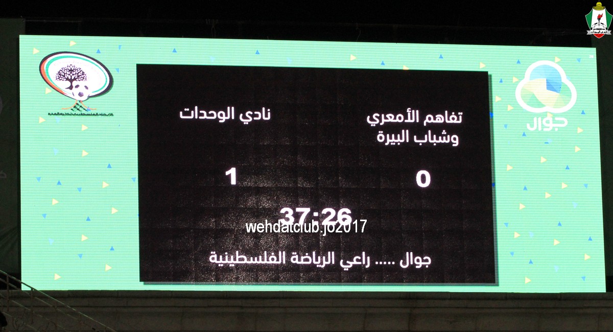 حقق الوحدات فوزاً بهدفين نظيفين على شقيقه تفاهم النادي الأمعري والبيرة ، وذلك خلال مهرجان اعتزال اللاعب الفلسطيني إيهاب أبو جزر في اللقاء الذي أقيم على ملعب ماجد الأسعد بمنطقة البيرة التابعة لمحافظة رام الله ، وسط إهتمام دبلوماسي وإداري كبير وبحضور أربعة آلاف متفرج لحضور مهرجان الاعتزال ، حيث حضر المهرجان سعادة سفير المملكة الأردنية الهاشمية ، رئيس الإتحاد الفلسطيني لكرة القدم اللواء جبريل الرجوب ، رئيس النادي الامعري النائب جهاد طمليه وبعض ، إداريي الوفد رئيس نادي الوحدات يوسف الصقور ، ونائب الرئيس علي خليفة ، ومدير نشاط كرة القدم زيد أبو حميد ، ومدير لجنة العلاقات العامة إياد الشملتي ، وبعص أعضاء إدارة النادي الأمعري.