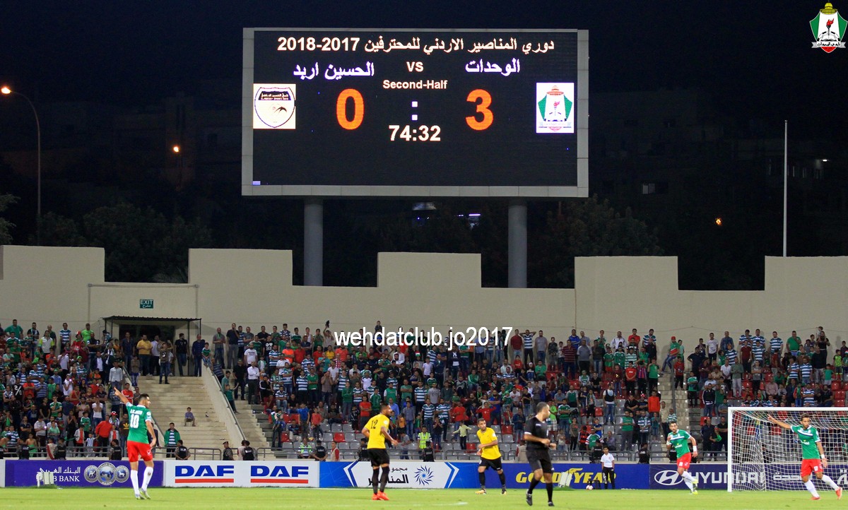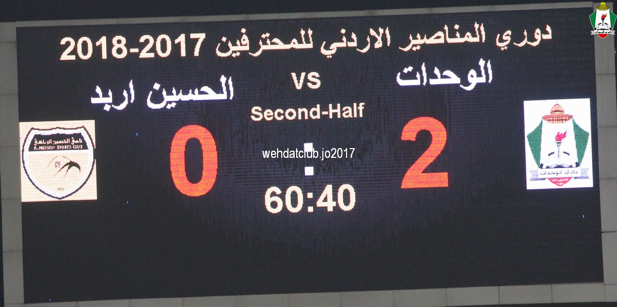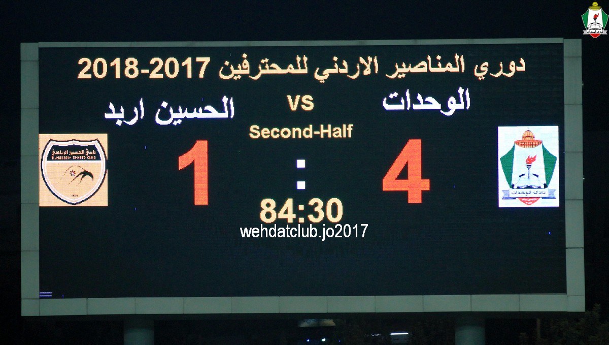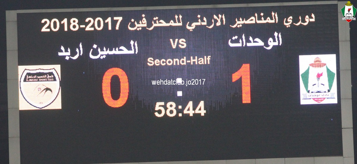 وسجل اهداف المباراة المباراة سعيد مرجان بالدقيقة 59 وعبدالله ذيب بالدقيقة 61 و بهاء فيصل بالدقيقة 70 و حمزة الدردور بالدقيقة 77 للوحدات و توريه بالدقيقة 84 هدف الحسين الوحيدبهذ الفوز يرفع الوحدات رصيده الى 8 نقاط بصدارة الترتيب فيما تجمد رصيد الحسين عند نقطة وحيدة من اربع مباريات.
