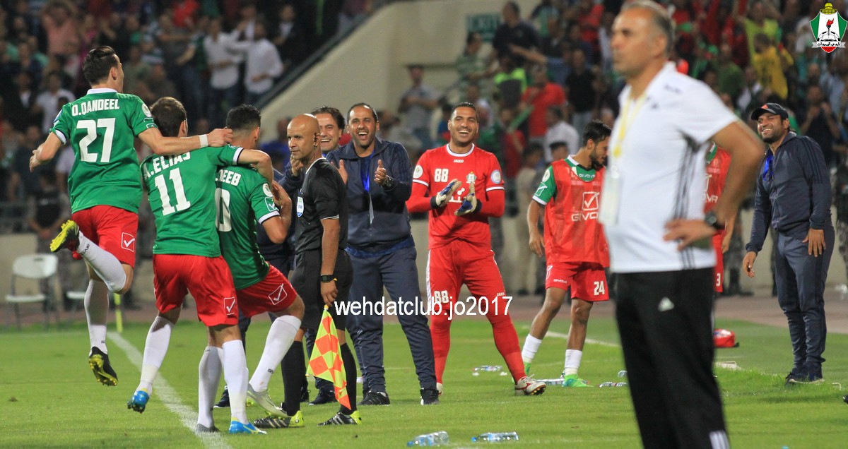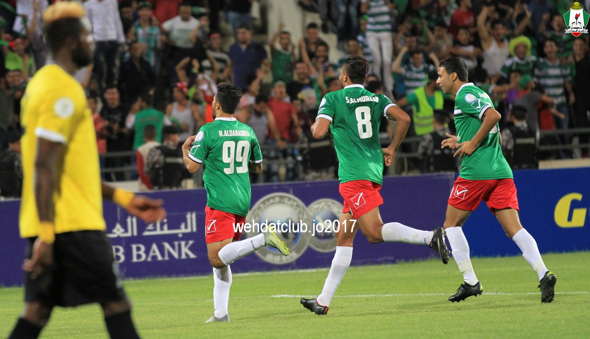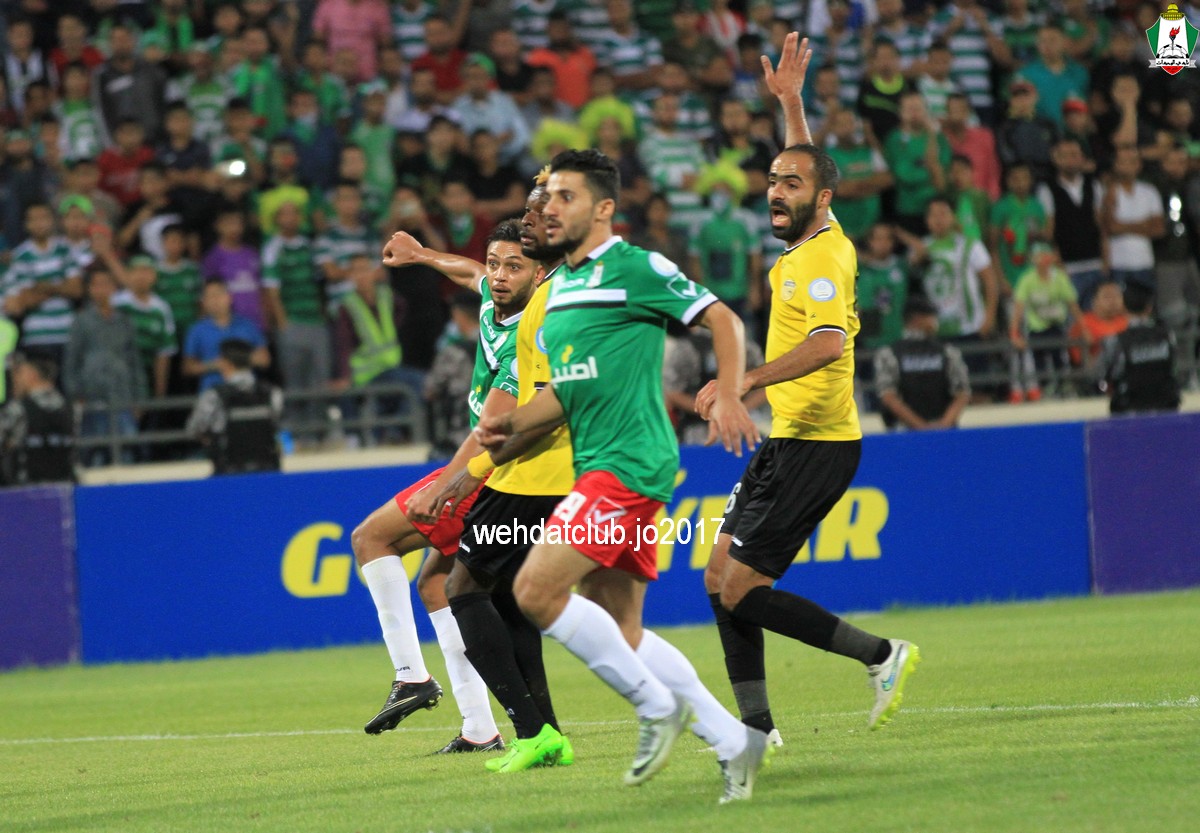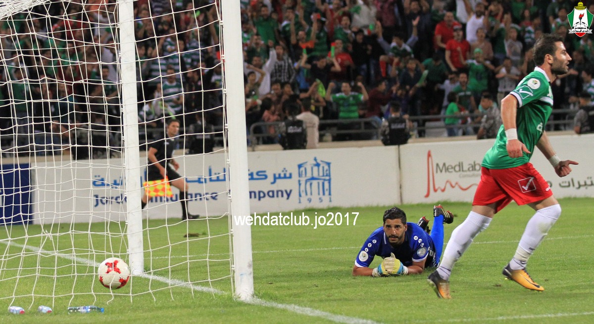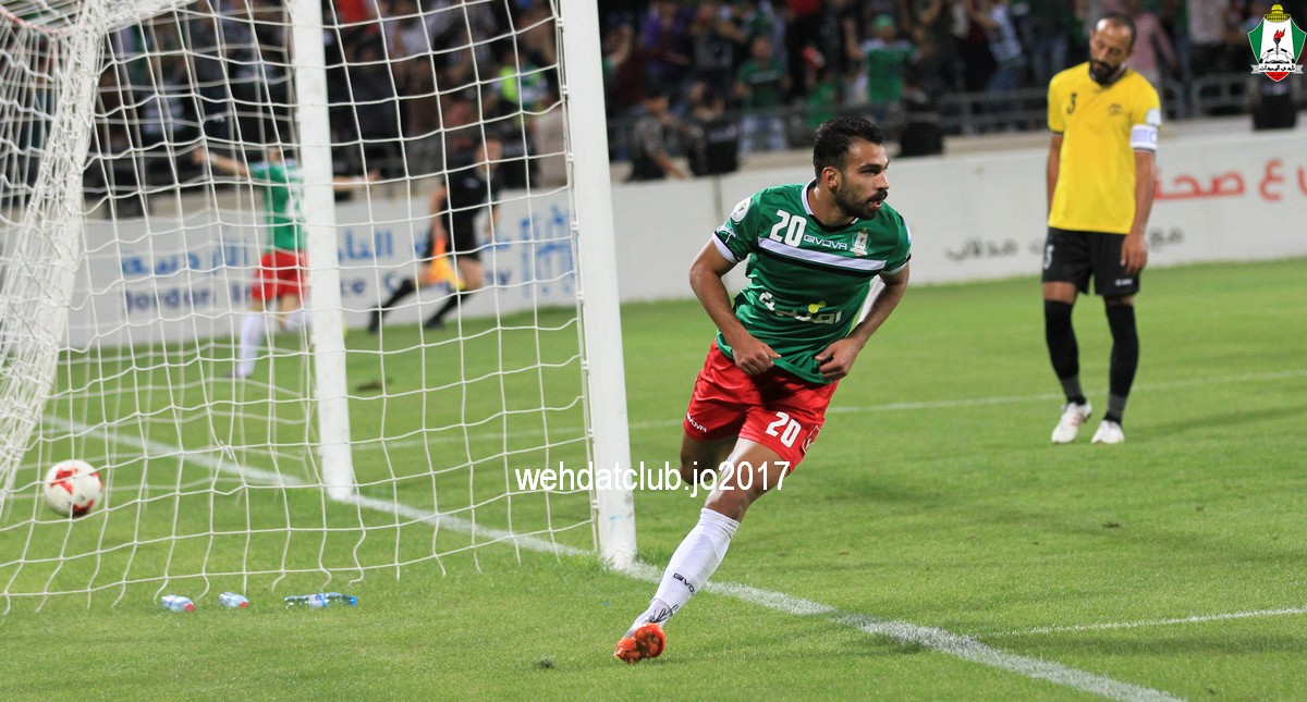 النتيجة : فوز الوحدات 1/4 سعيد مرجان (59) عبدالله ذيب (61) بهاء فيصل (70) حمزة الدردور (77) الوحدات