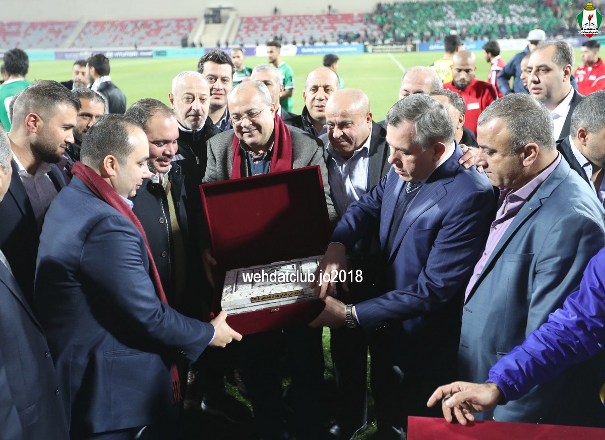 وجسدت جماهير الوحدات المشهد بتيفو كتب عليها اسم “عهد” تلك الشابة الفلسطينية “الشقراء” التي اعتقلت من قبل قوات الاحتلال قبل أسابيع وهتفت الجماهير لسمو الامير علي كثيرآ حتى ما بعد نهاية المباراة وقدم سمو الامير كاس البطولة لفريق هلال القدس الفلسطيني تكريمآ لهم و تبادل الدروع التذكارية .