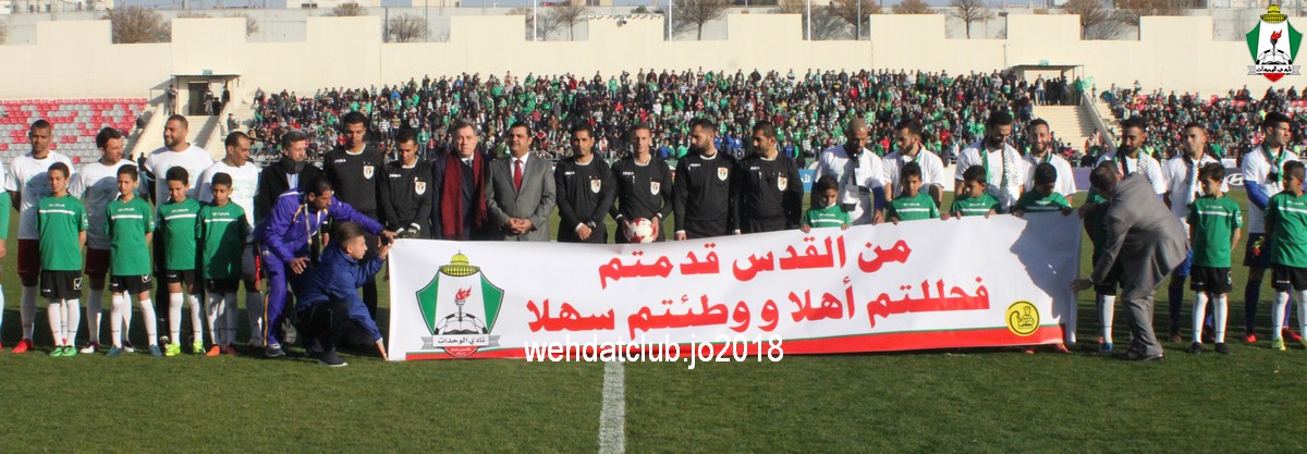 تحت رعاية الأمير علي بن الحسين رئيس الهيئة التنفيذية لاتحاد كرة القدم، اقام عصر اليوم اللقاء “التضامني” بين الوحدات و شقيقه هلال القدس الفلسطيني على ستاد الملك عبدالله الثاني بمنطقة القويسمة، و يأتي اللقاء دعما لصمود المقدسيين وانتهى لصالح الوحدات بنتيجة (2-1).