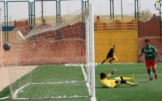 في الشوط الثاني استمر مسلسل اهدار الفرص من لاعبي الوحدات ومن رأسية مهند سمرين استقرت خارج الخشبات الثلاث تلاهى تسديدة ثائر الديرباني و محمد أبو هشام تصدى لهما حارس المنشية ، ومن كره بينية متقنة لمهند سمرين وصلت زميله محمد أبوجوهر الذي تمكن من تسجيل الهدف الثاني للوحدات من تسديدة لتستقر الكرة في الشباك بالدقيقة 75 ، ويضيف أبو جوهر “الهاتريك” الشخصي و الهدف الثالث للأخضر بعد عرضية أبو هشام ليدكها رأسية بالمرمى باللحظات الأخيرة من اللقاء وتنتهي المباراة بفوز الوحدات بثلاثية نظيفة ليواصل صدارة الدوري.