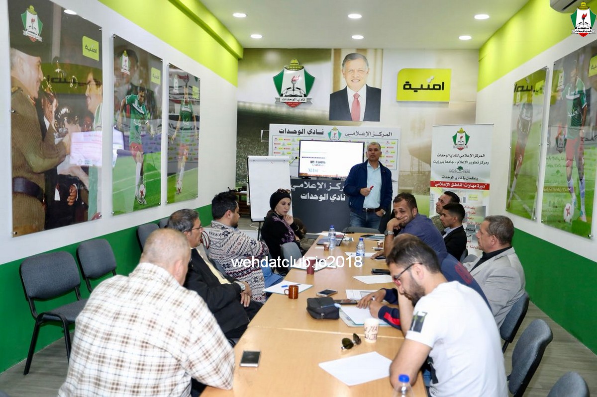 تواصلت فعاليات دورة مهارات الناطق الإعلامي لليوم الثاني على التوالي والتي تقام في قاعة المؤتمرات الصحفية في مقر النادي بمخيم الوحدات بالتعاون مع مركز تطوير الاعلام – جامعة بير زيت الفلسطينية.