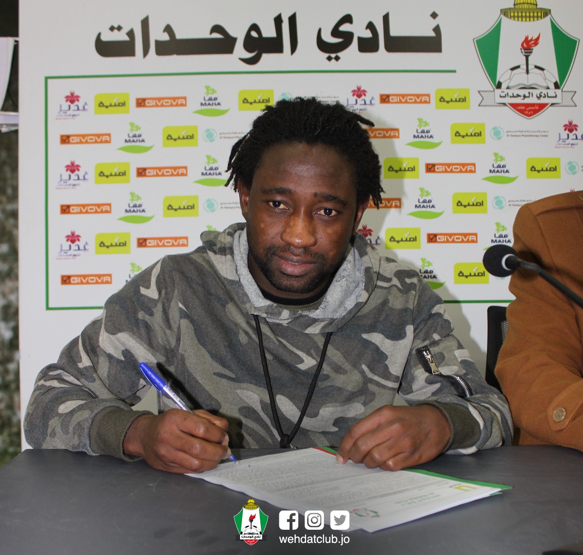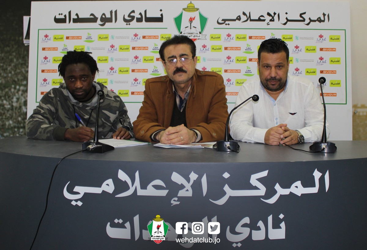 وجرى حفل توقيع اللاعب في المركز الاعلامي لنادي الوحدات بحضور أمين السر خضر صوان ووكيل اللاعب نزار الشعري.