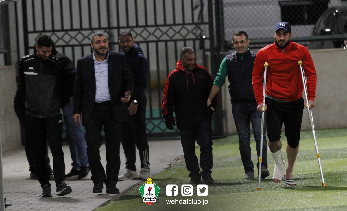 واطمئن الصقور كذلك على إصابة الحارس فراس صالح متمنيا له الشفاء العاجل.