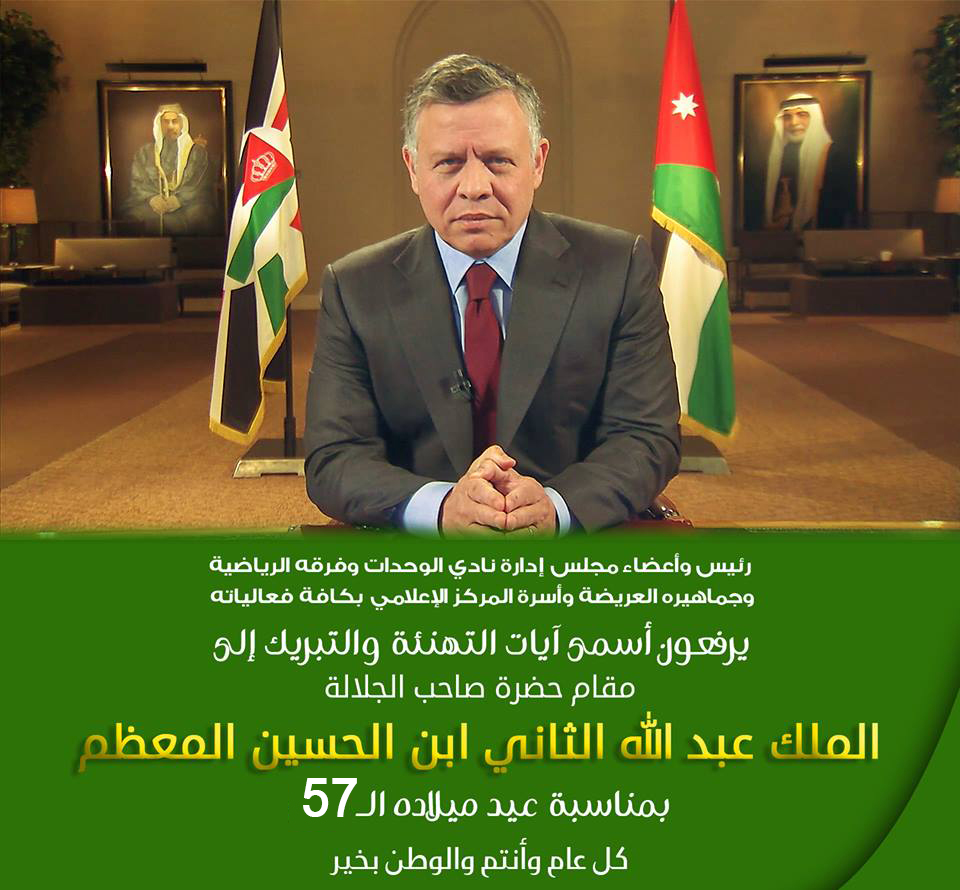 نادي الوحدات يرفع أسمى آيات التهنئة و التبريك الى قائد البلاد بمناسبة عيد ميلاده ال”57″