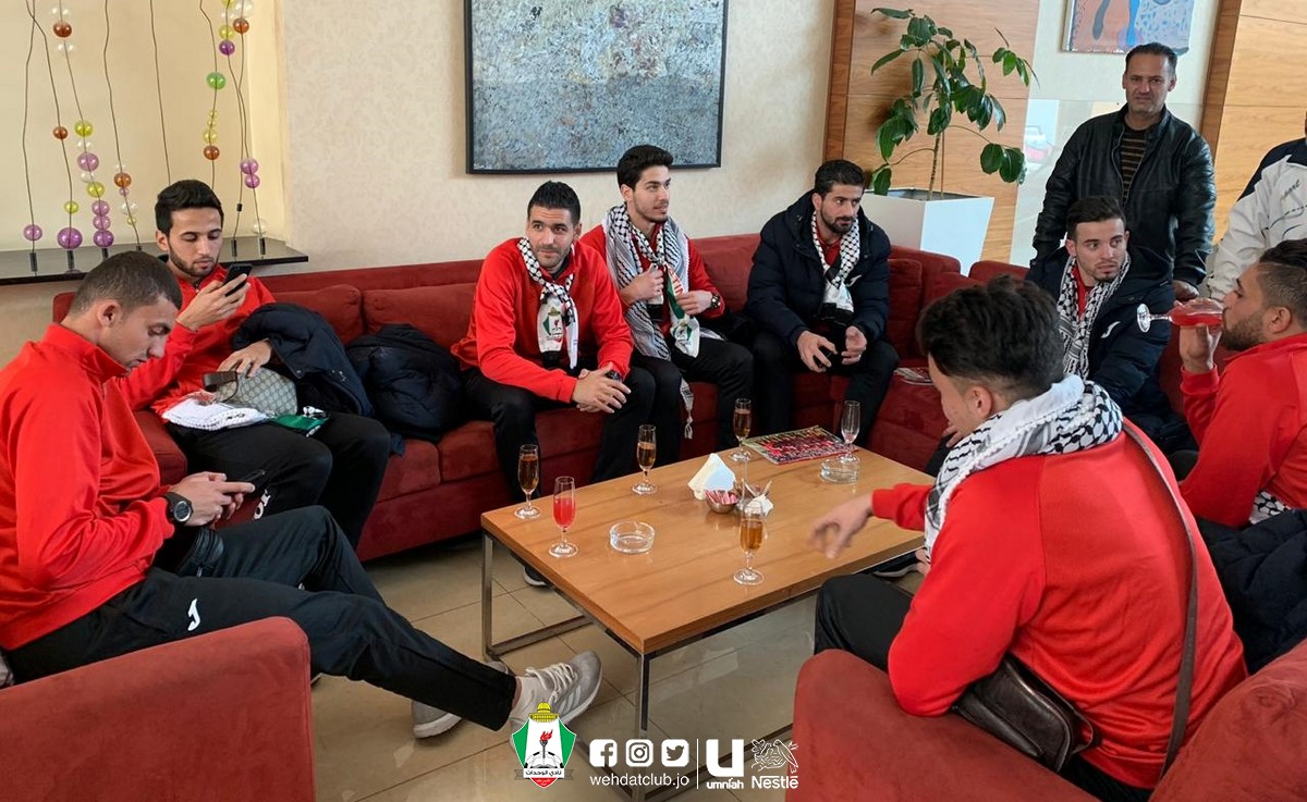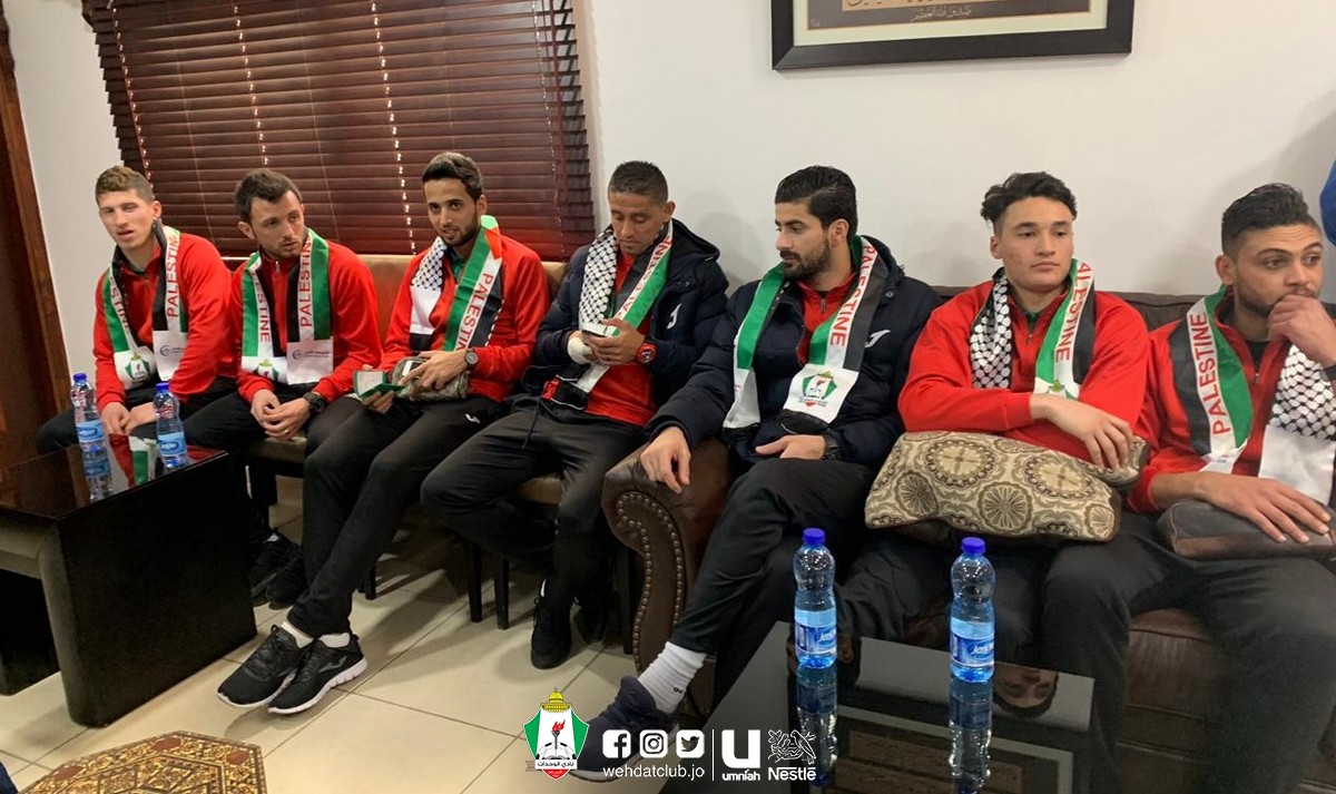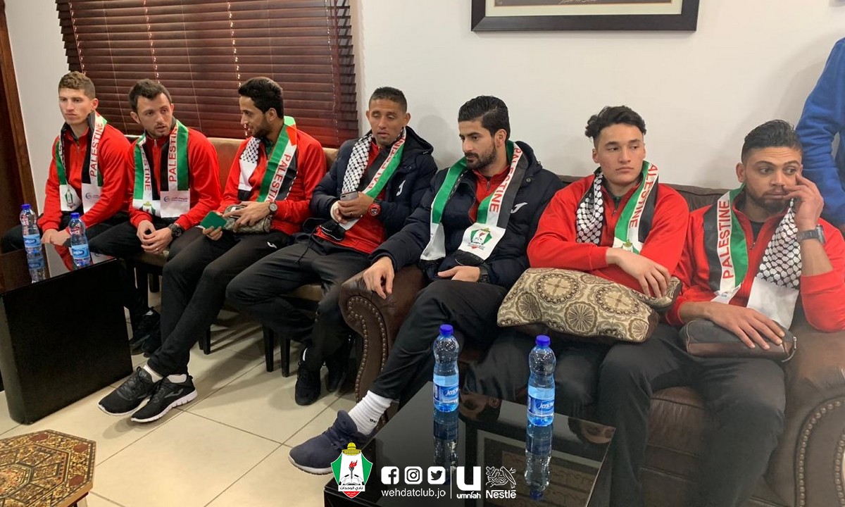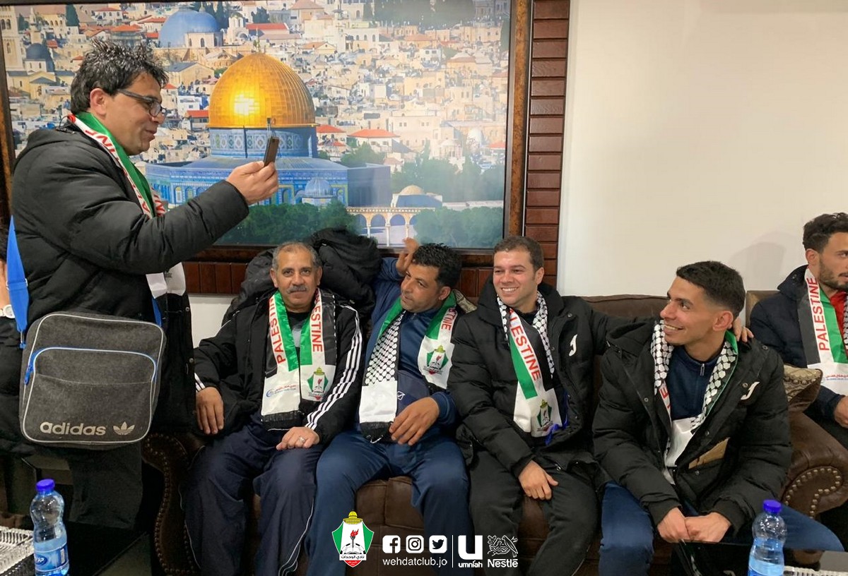 الجدير ذكره أن بعثة الوحدات التي توجهت إلى فلسطين ترأسها نائب الرئيس المهندس علي خليفة وضمت إلى جانبه أمين السر خضر صوان ومدير نشاط كرة القدم زيد أبو حميد والمنسق الإعلامي بسام شلباية ومدير الفريق مهدي أبو قشة والمدير الفني قيس اليعقوبي والمدرب العام عامر ذيب ومدرب الحراس عثمان برهومة والدكتور مؤيد عمر والمعالج مأمون حرب والموفدان الإعلاميان ثائر الشيباني وجهاد نجم ومسؤول اللوازم عامر نجم إلى جانب “18” لاعبا وهم: تامر صالح، عبدالله الفاخوري، محمد الباشا، كارلوس، سليم عبيد، عمر قنديل، أحمد الياس، أدهم القريشي، رجائي عايد، عبيدة السمارنة، أنس العوضات، صالح راتب، بهاء فيصل، حسن عبد الفتاح، سعيد مرجان، محيسن أبو جبلة، شاهر شلباية وأحمد ثائر، فيما تأخر التحاق الرباعي محمد الدميري وفادي عوض وسامي الهمامي وديمبا إلى جانب مدرب اللياقة طارق بن ناصر لعدم إصدار التصاريح التي تخولهم الدخول إلى فلسطين، فيما يغيب عن هذه المواجهة حمزة الدرددور بسبب الإيقاف ويزن ثلجي بسبب الإصابة.