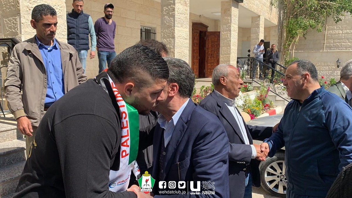 وأصر محافظ أريحا جهاد أبو العسل على تواجد بعثة الوحدات في المقصورة الخاصة لإدارة المعابر والحدود لبضعة دقائق، واستغل أبو العسل تواجد “الأخضر” في فلسطين للترحيب والتأكيد على عمق العلاقات التي تجمع بين الشعبين الأردني والفلسطيني.