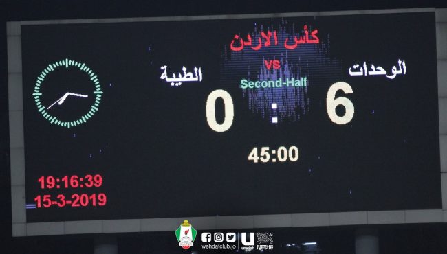 نجح فريق الوحدات من تحقيق فوز كبير على شقيقه الطيبة (درجة ثانية) بنتيجة 8-0 وذلك في اللقاء الذي جمع الفريقين لحساب الدور 32 من بطولة كاس الاردن “المناصير” بكرة القدم، ليتاهل الوحدات الى دور ال 16 ملاقيا فريق يرموك عمان خلال الفترة 18 الى 20 من شهر ابريل/نيسان المقبل.